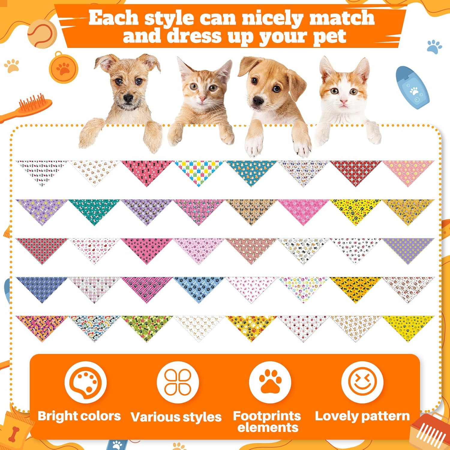 - Soft & Durable Polyester Fabric: Made from breathable, lightweight polyester, these pet scarves are soft on fur yet strong enough for repeated use. Clear prints, neat stitching, and washable fabric ensure comfort, durability, and fade resistance
