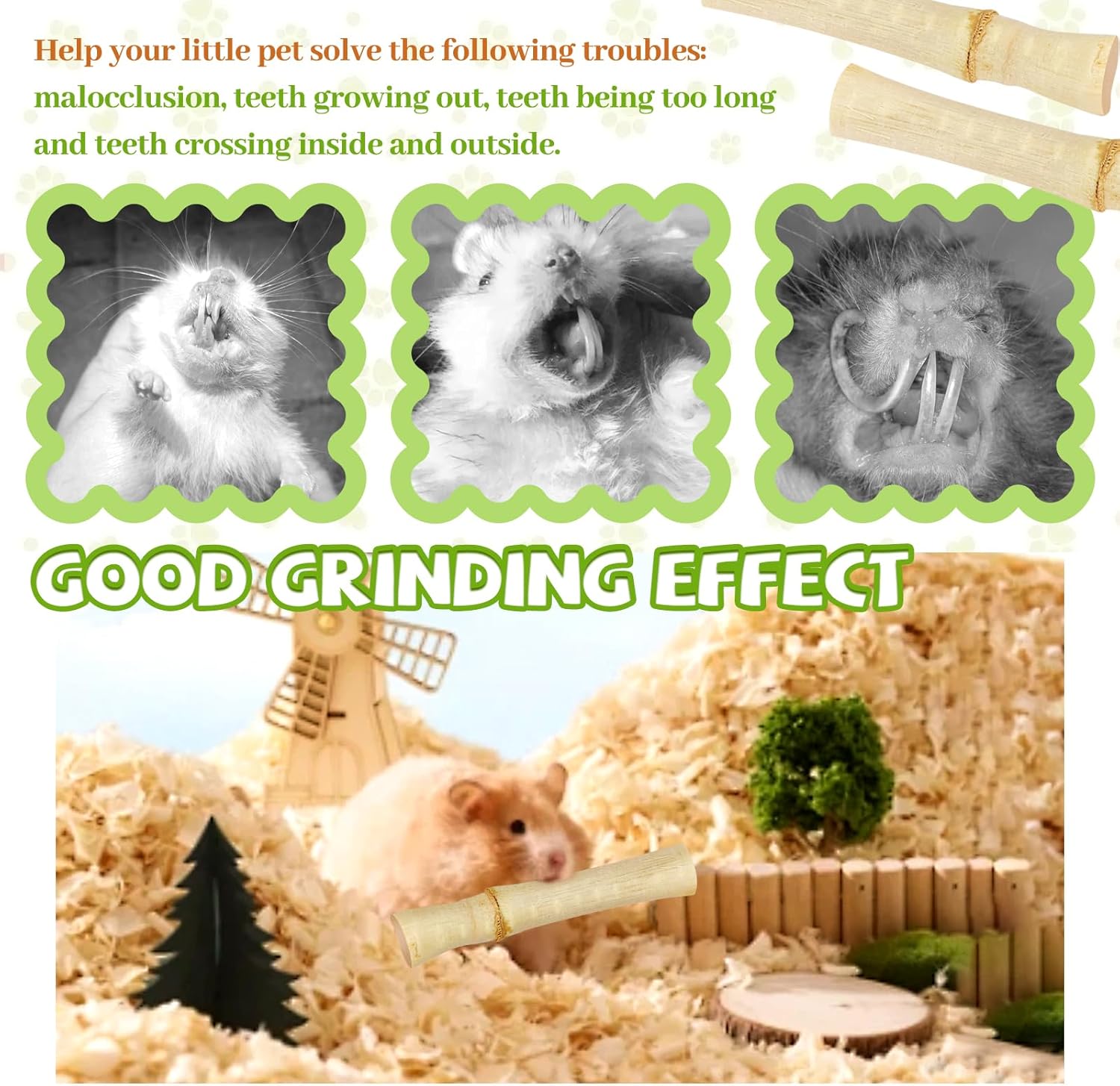 - Multiple Species: Ideal for rabbits, guinea pigs, chinchillas, hamsters, gerbils, parrots, and other small animals with active chewing needs