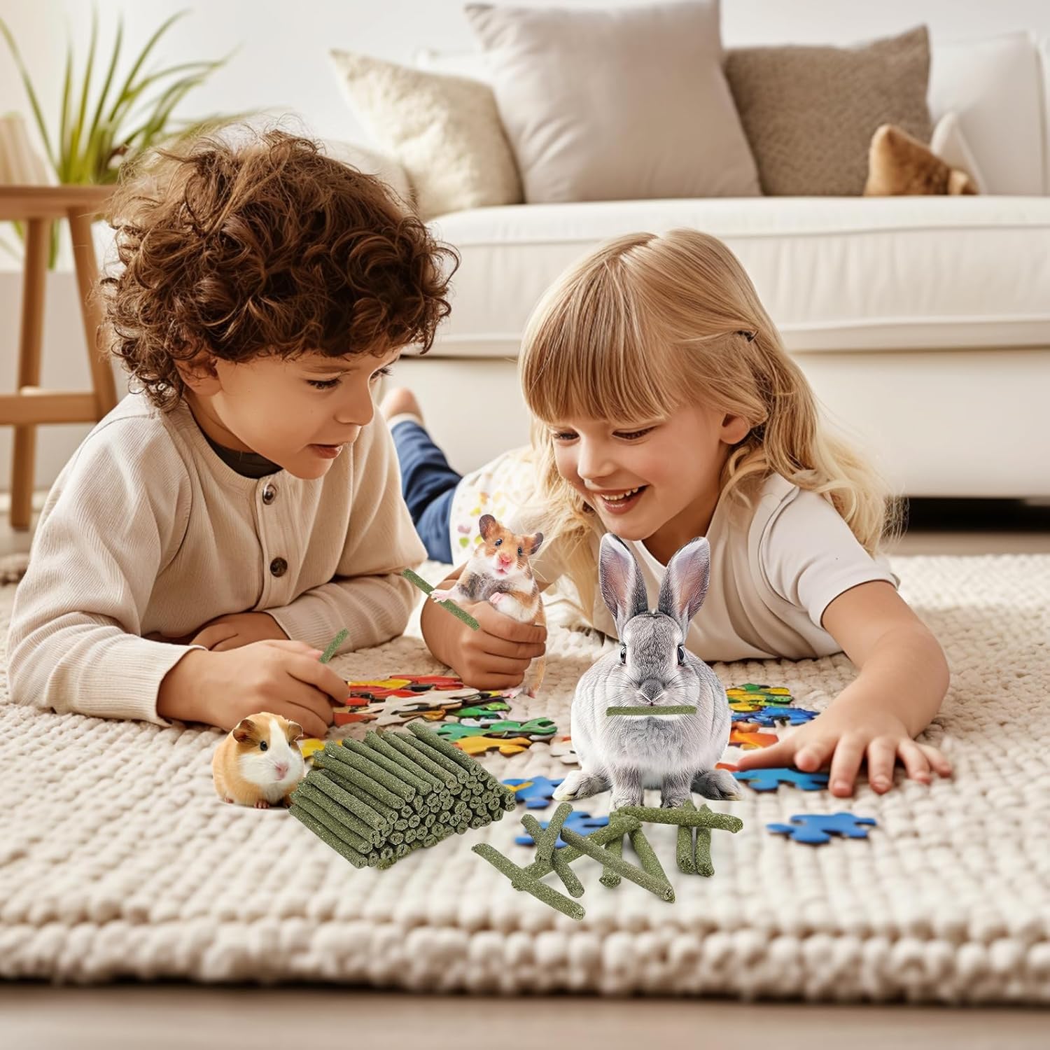 - Freshness Guaranteed - Each bag contains 100 timothy hay sticks, carefully sealed to maintain maximum freshness. Air-tight package keeps the chew sticks fresh for a long time, also prevents scattering, ready to be enjoyed by your pets whenever they want a healthy snack. Timothy hay sticks provide chew toys pet treat for furry friends, ideal for rabbits, chinchillas, guinea pigs, hamsters, gerbil and other rodents. No need worry about furniture and wires being ruined any more.