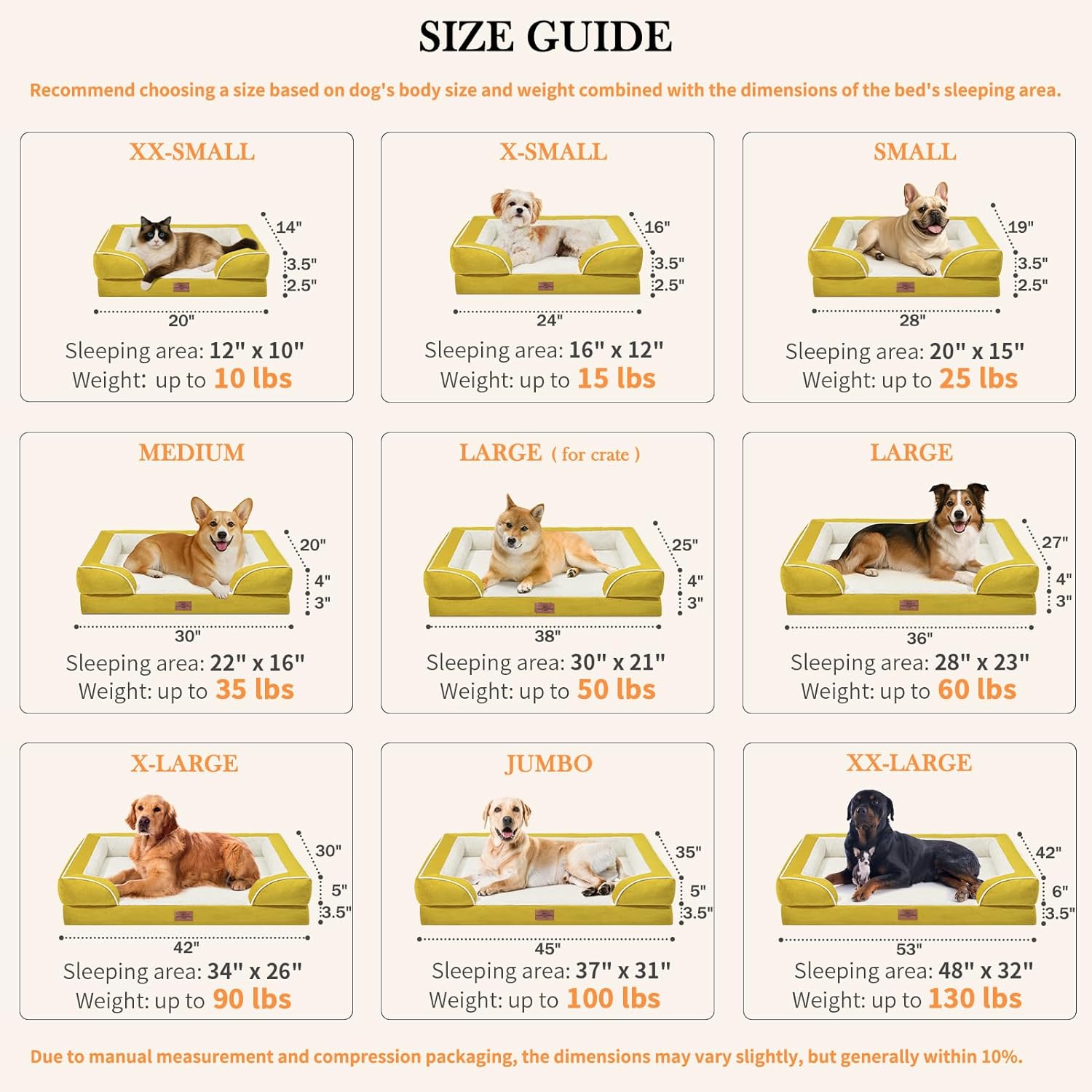 Comfort Expression Small Dog Beds Waterproof Cat Beds Orthopedic Foam Sofa Beds for Small Dogs Comfy Pet Bed with Washable Removable Cover & Non-Slip Bottom(XX-Small,Spicy Mustard)