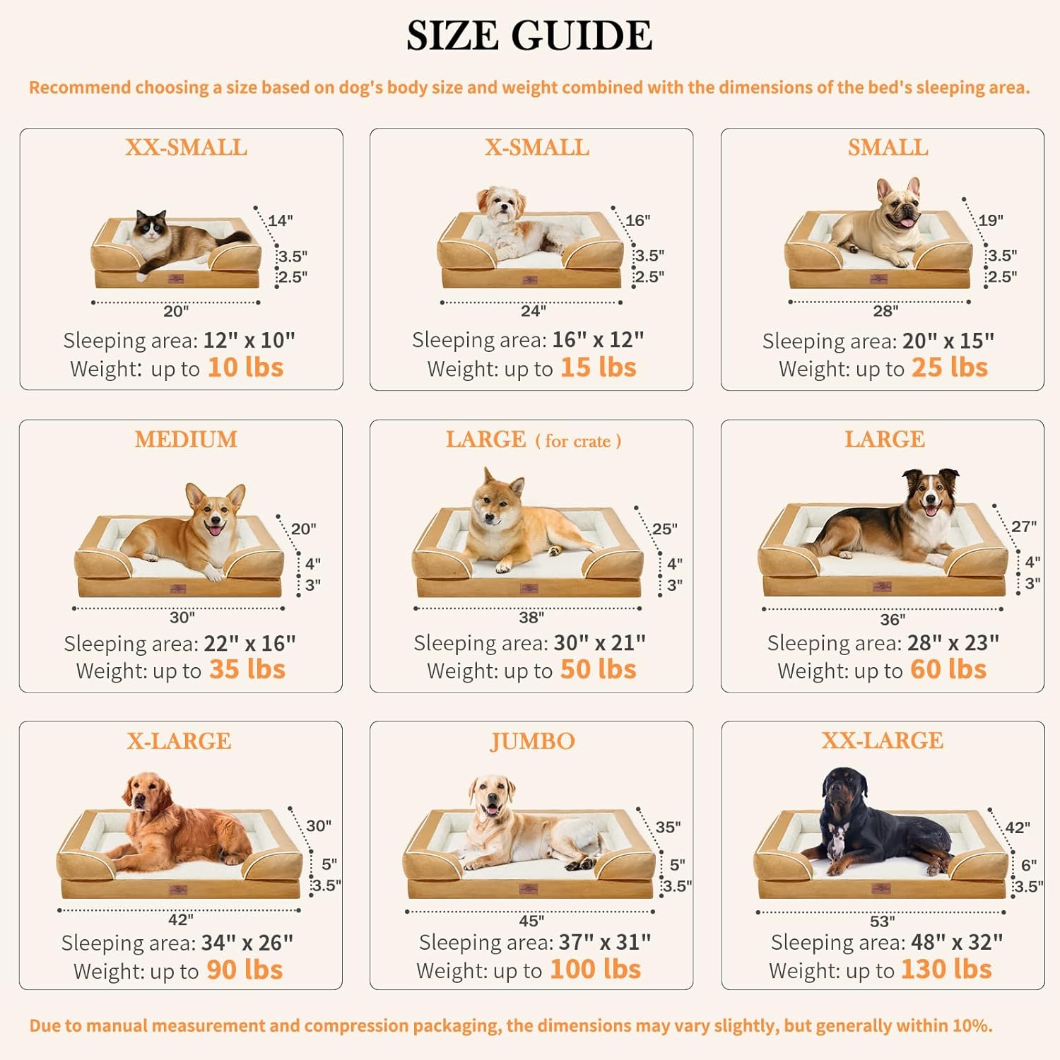 Comfort Expression Small Dog Beds Waterproof Cat Beds Orthopedic Foam Sofa Beds for Small Dogs Comfy Pet Bed with Washable Removable Cover & Non-Slip Bottom(XX-Small,Khaki)