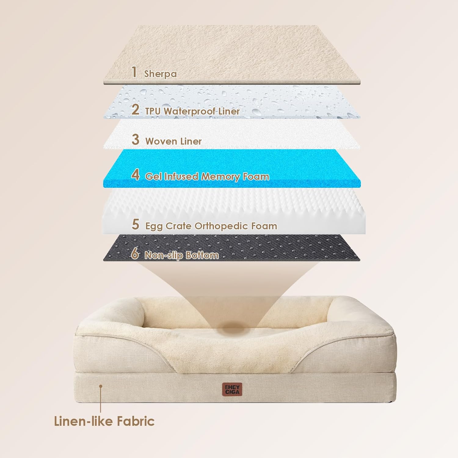 - MEMORY FOAM: The EHEYCIGA orthopedic dog bed, endowed with memory foam and egg crate foam, ensures balanced support and pressure release. Its blend of plushness and stability is ideal for older dogs, easing the strain on their joints.