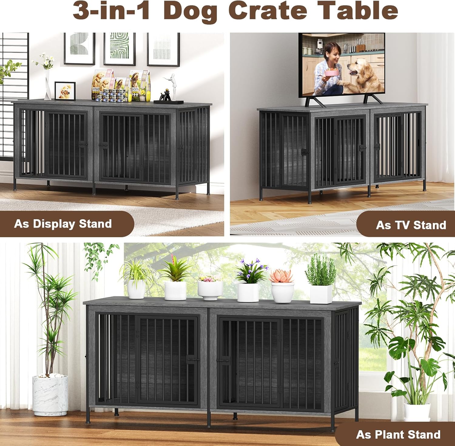 - 【Versatile Dog Crate Table】: Brief and retro dog furniture crate is suitable for various decoration styles. It is not only a dog crate for dogs, but also a TV cabinet/side table to place decorations and storage. The huge size ensures dogs have a comfortable and spacious living area, while also maximizing the use of the house's space.