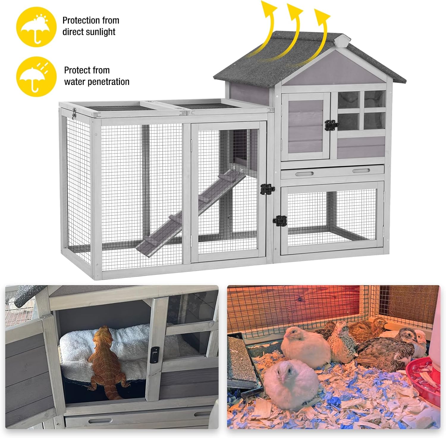 Aivituvin Rabbit Hutch Indoor Bunny Cage Outdoor with Run Chicken Coop Guinea Pig House with Waterproof Asphalt Roof,No Leakage Pull Out Tray (103.2" L x 25.2" W x 36.2" H, Grey-2 Sets)