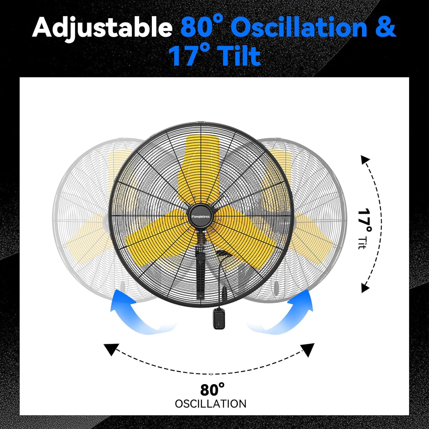 - đđ˘đĽđđ˘đ§đ & đđŹđđ˘đĽđĽđđđ˘đ§đ - The heavy-duty mental wall fan provides an automatic oscillation function of 80 degrees left and right, and the vertical tilt angle can be adjusted up to 17 degrees, helping you easily adjust the wind direction and enjoy the best comfort