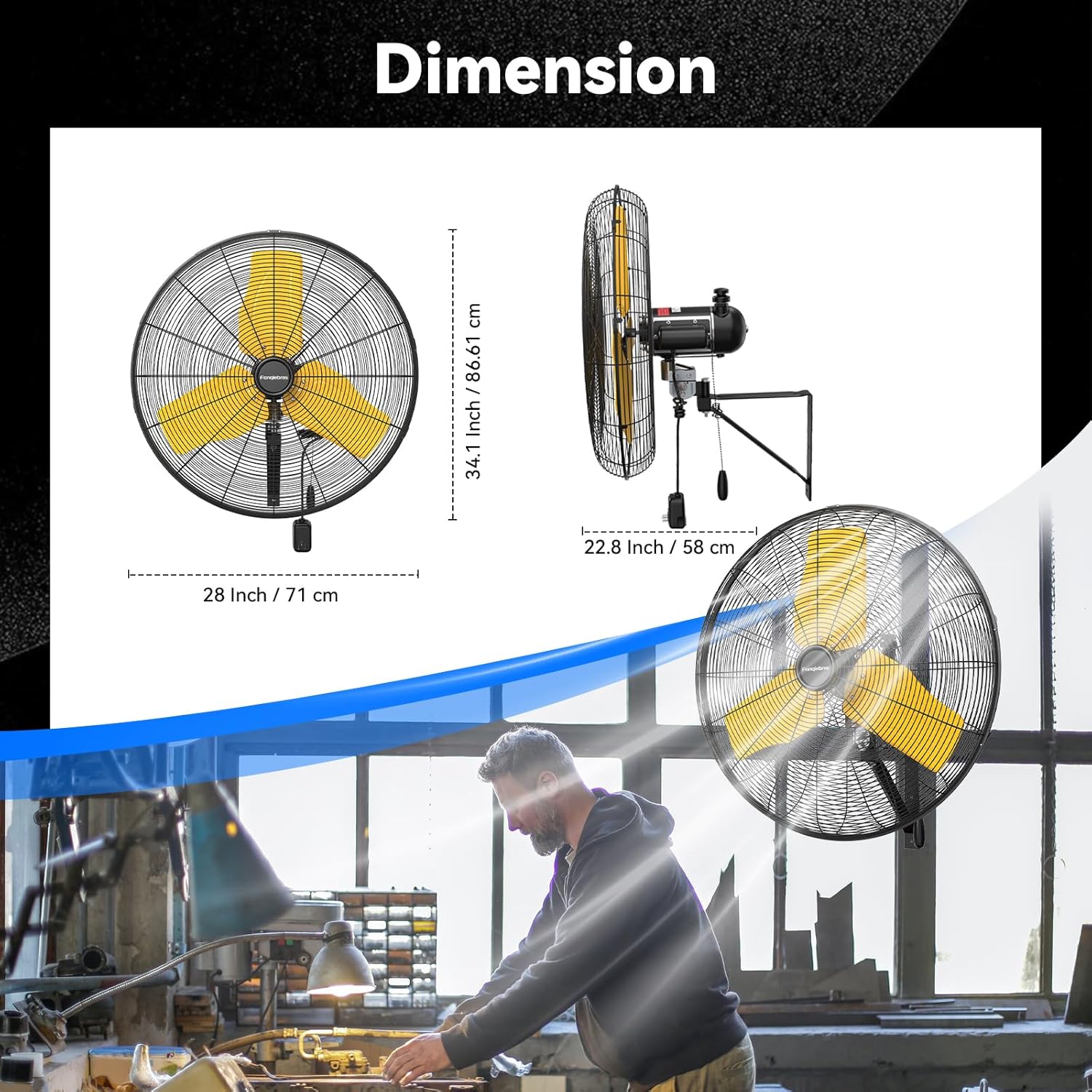- đđ˘đ đĄ đđđĽđ¨đđ˘đđ˛ đđ˘đŤ đ đĽđ¨đ° - The oscillating wall fan zipper design makes the operation more intuitive and simple, and can be adjusted from high, medium and low speeds by zipper to meet different needs. High speed 9500 CFM, medium speed 8000 CFM, low speed 7200 CFM, providing hurricane-like airflow to meet your garages, shops, covered patios, or anywhere else you need