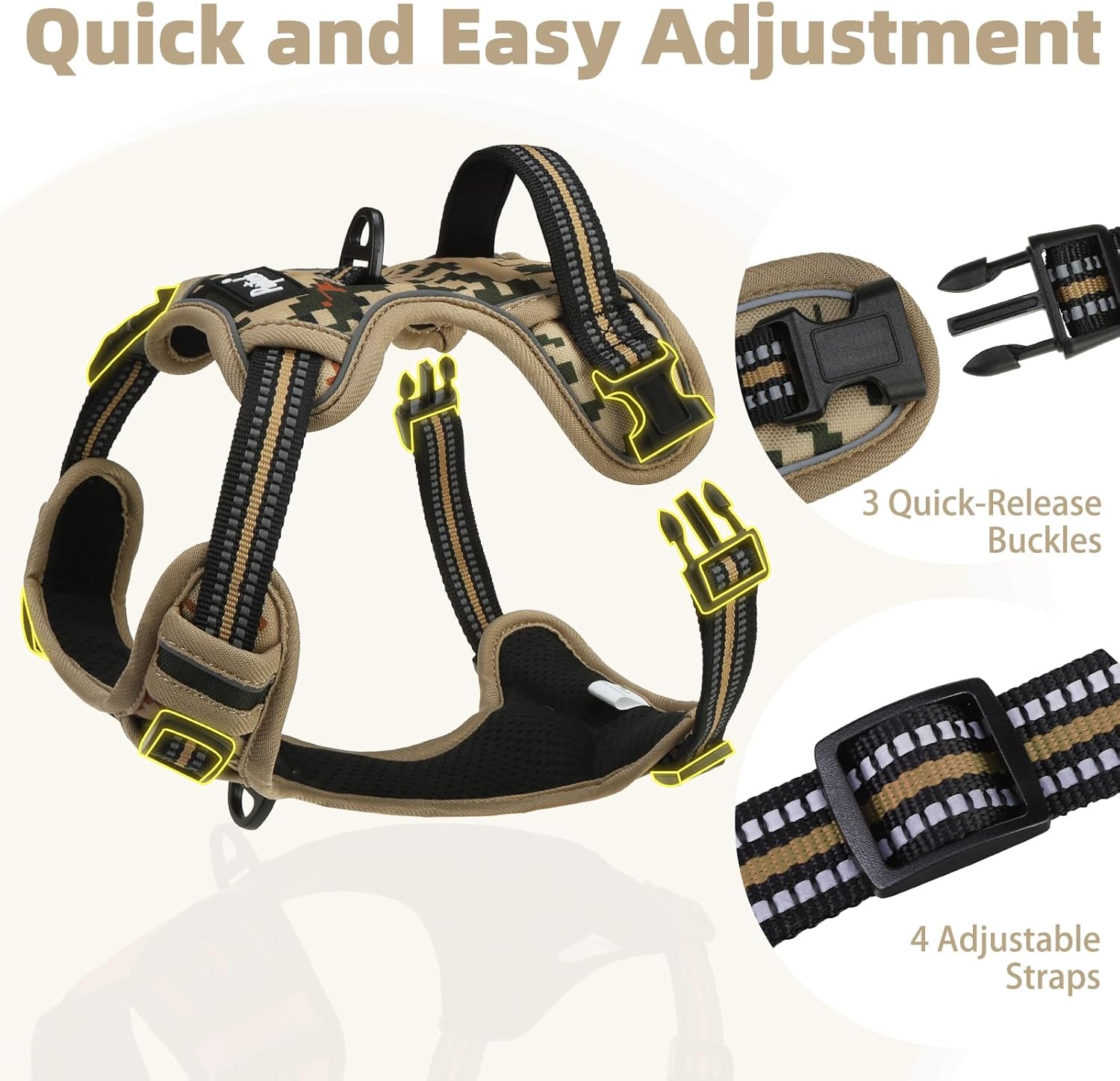 PUPTECK No Pull Dog Harness for Large, Adjustable Reflective Dog Harness with Handle Easy Control, Comfortable Soft Padded Pet Vest Harness for Large Dogs, Camouflage L
