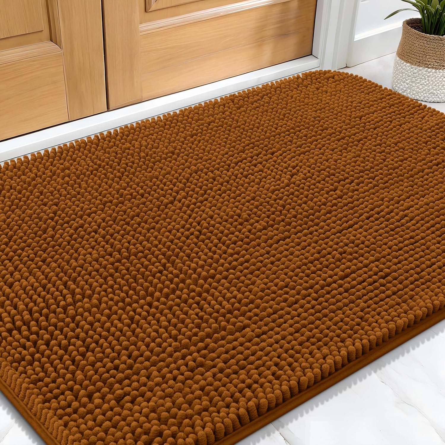 OLANLY Dog Door Mat for Muddy Paws 30x20, Absorbs Moisture and Dirt, Absorbent Non-Slip Washable Doormat, Quick Dry Chenille Mud Mat for Dogs, Entry Indoor Entryway Carpet for Inside Floor, Ochre