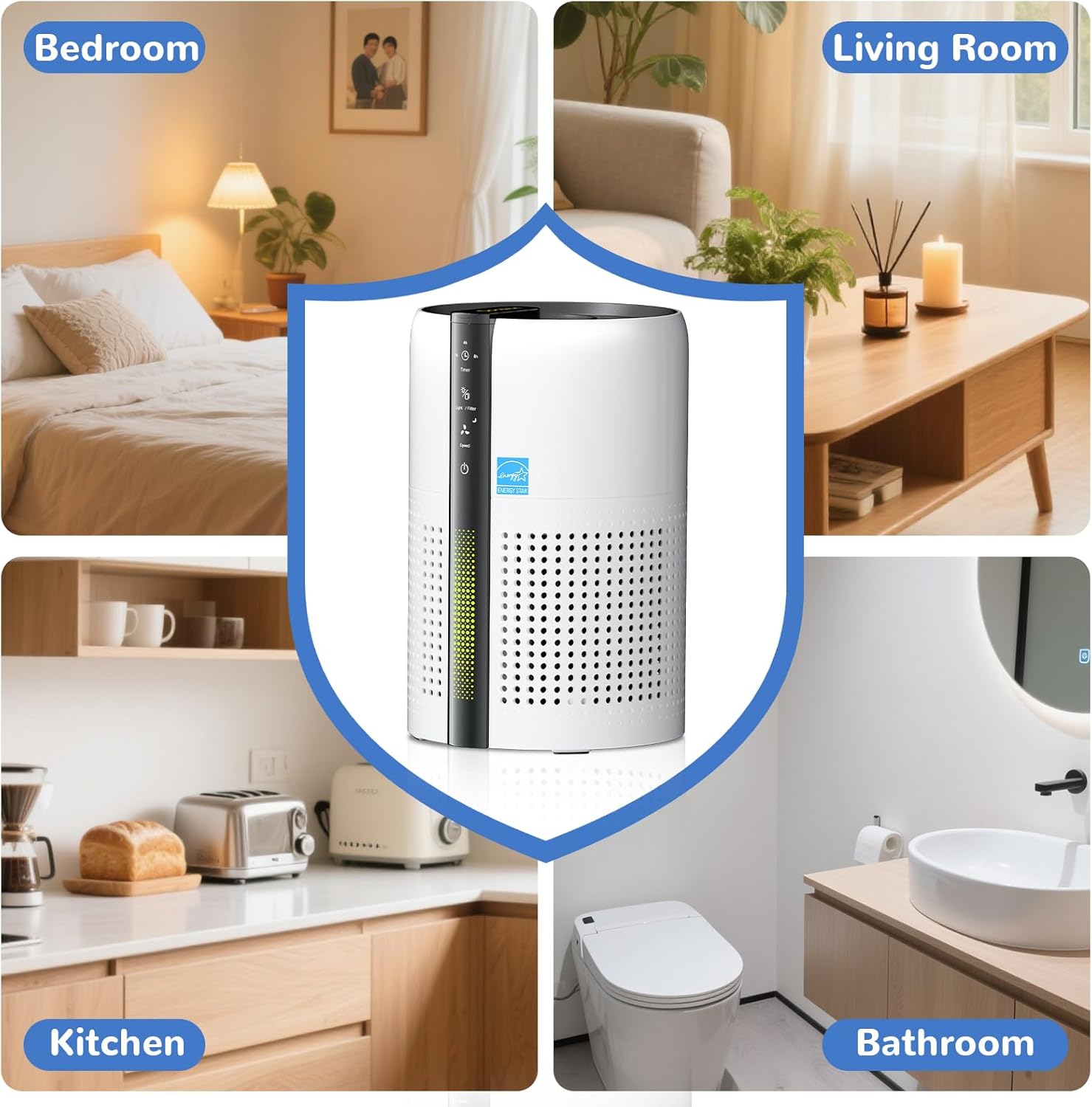 - đSmart Controls: Features 3 fan speeds, sleep mode, 2/4/8-hour timer, and 7-color mood light for customizable comfort. Operating as quietly as 22dB, this HEPA air purifier is perfect for nurseries, study rooms, and bedrooms, ensuring fresh air without disturbing sleep.