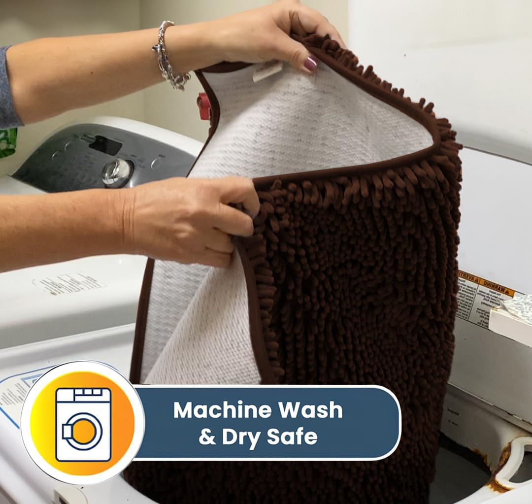 Muddy Mat® AS-SEEN-ON-TV Highly Absorbent Microfiber Door Mat and Pet Rug, Non Slip Thick Washable Area and Bath Mat Soft Chenille for Kitchen Bedroom Indoor and Outdoor - Chocolate Brown 6ft x 9ft