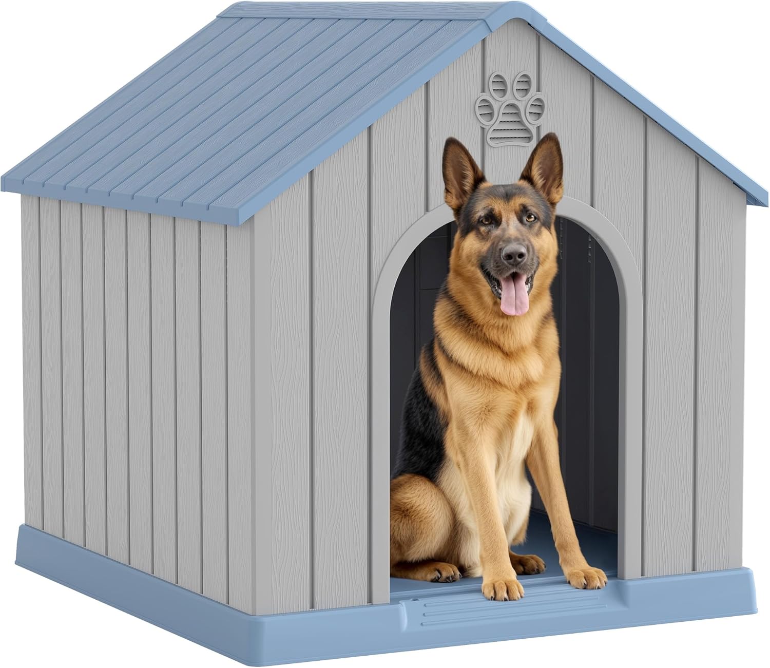 Large Dog House Outdoor Indoor for Medium Large Dogs, Durable Plastic Waterproof Doghouse with Air Vents and Elevated Floor, Easy Clean and Assemble (Blue, 36.2''LĂ38''WĂ38''H)