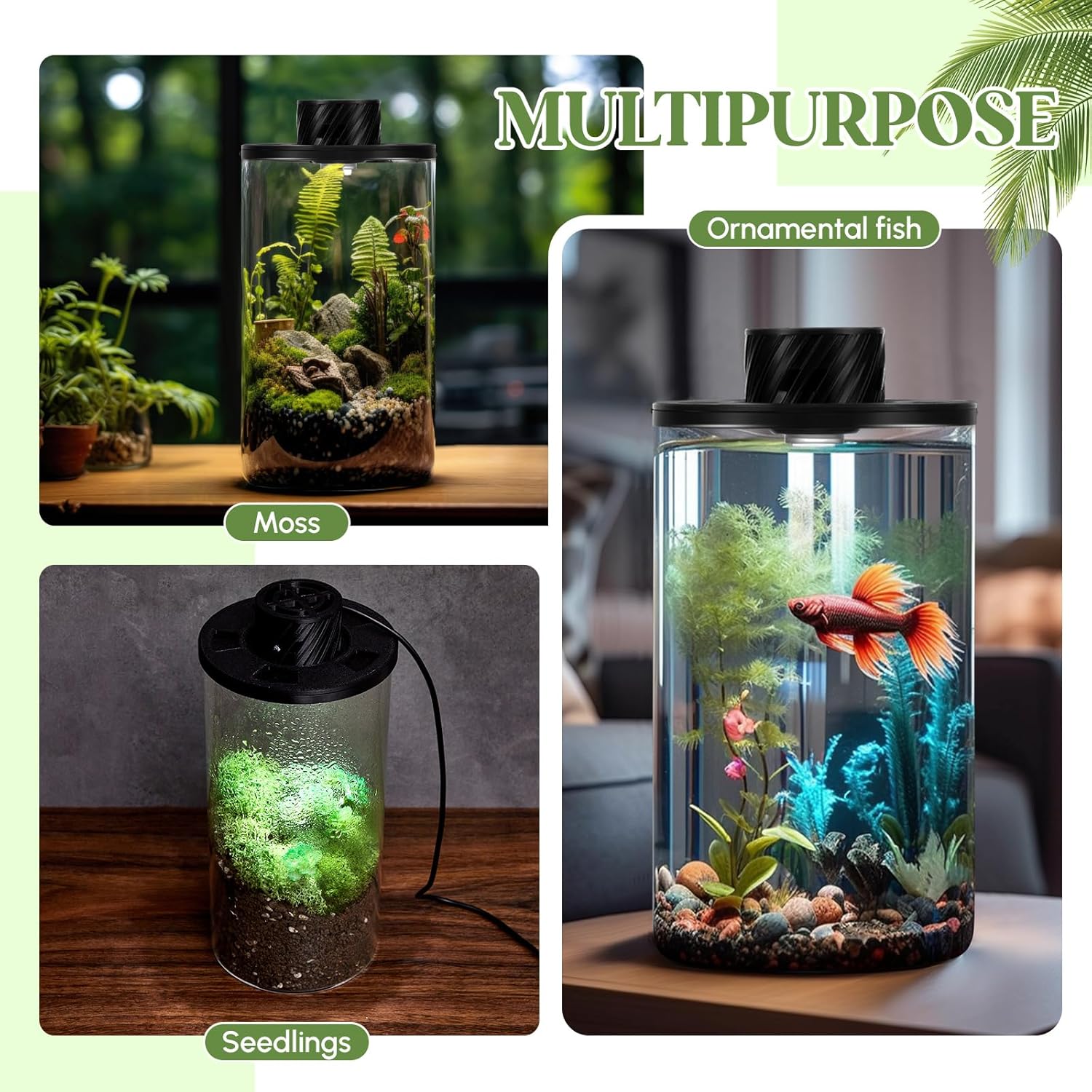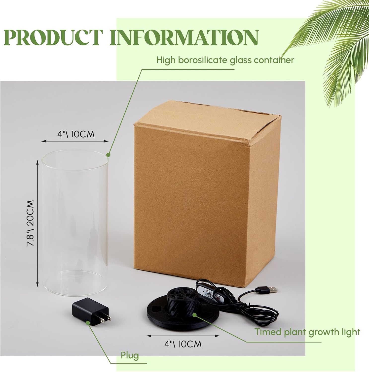 - What You Will Get: 1 terrarium glass, about 7.8 inches high; Aquarium light, about 4 inches in diameter; 1 adapter 5V2A, US two-pin plug