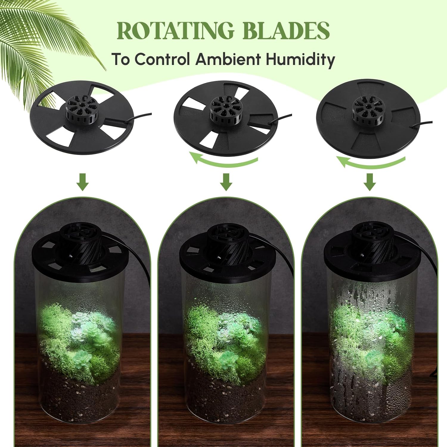 - Humidity and Timing Control: the size of the opening can be adjusted by rotating the inner ring to control the humidity inside the bottle; This allows you to create the suitable environment for different types of plants, helping them get better; The light also has a timing mode, Help you coordinate the environment inside the bottle