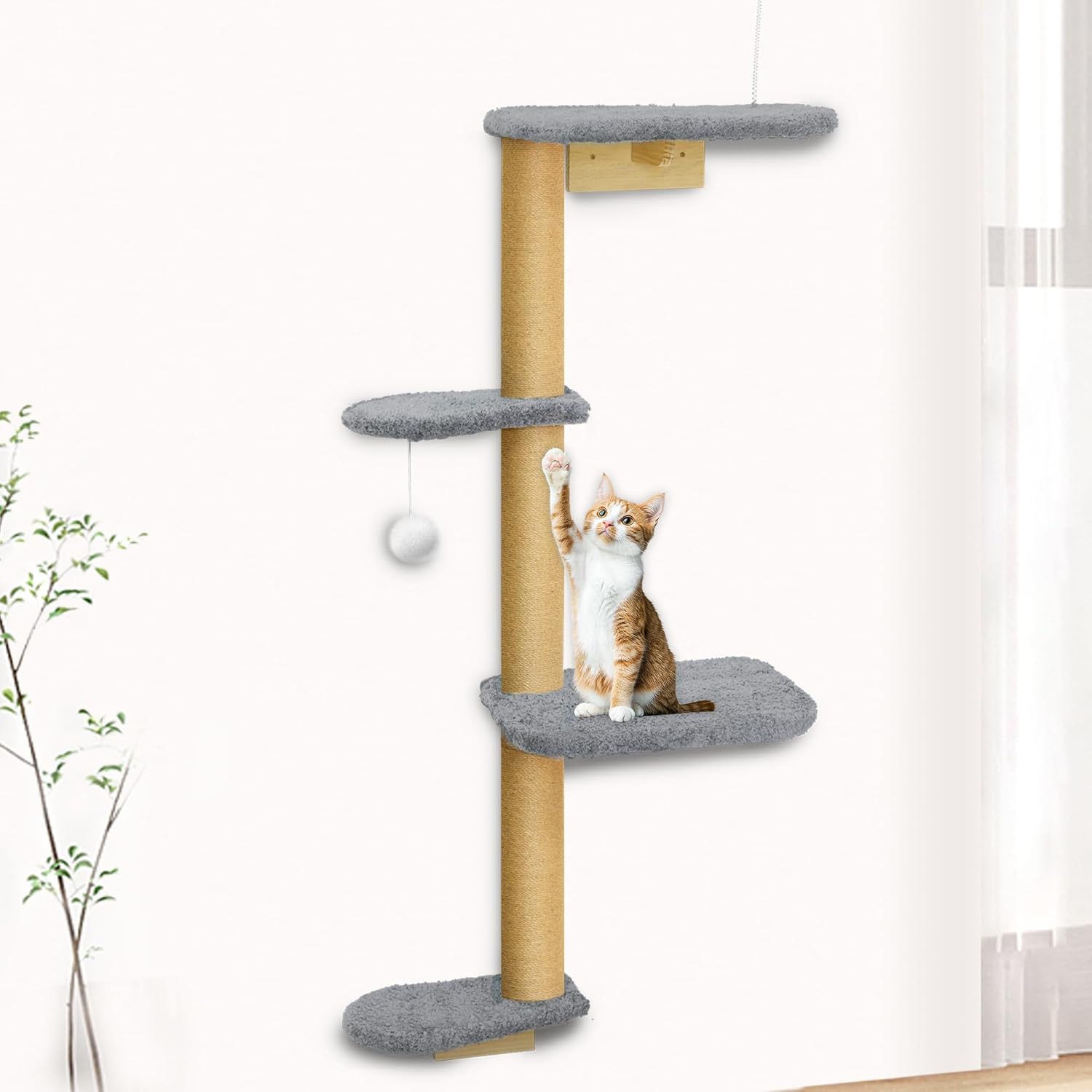 - Ideal for Apartments & Minimalist Interiors: Utilize vertical wall space and free up your floors. This space-saving cat tower turns blank walls into functional play areas without clutter. Its clean design and neutral grey plush integrate easily with modern dĂŠcor, making it a discreet yet dynamic solution for small-space cat enrichment.