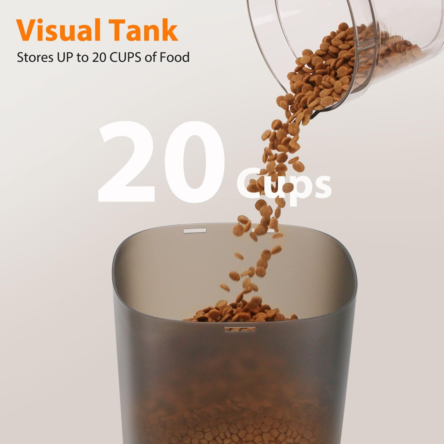 - Clog-free & High-Capacity Food Storage: With a generous 6L transparen food storage with a scheduled arrange 2 pets' feeding for 2-3 weeks at the same time. Plenty of storage space reduces the need for frequent refills, and transparent granary lets you observe the grain levels in real time, ensuring you know precisely when it's time for a refill.