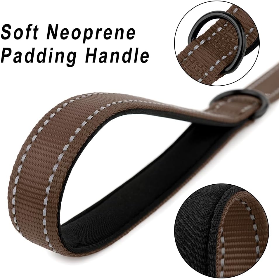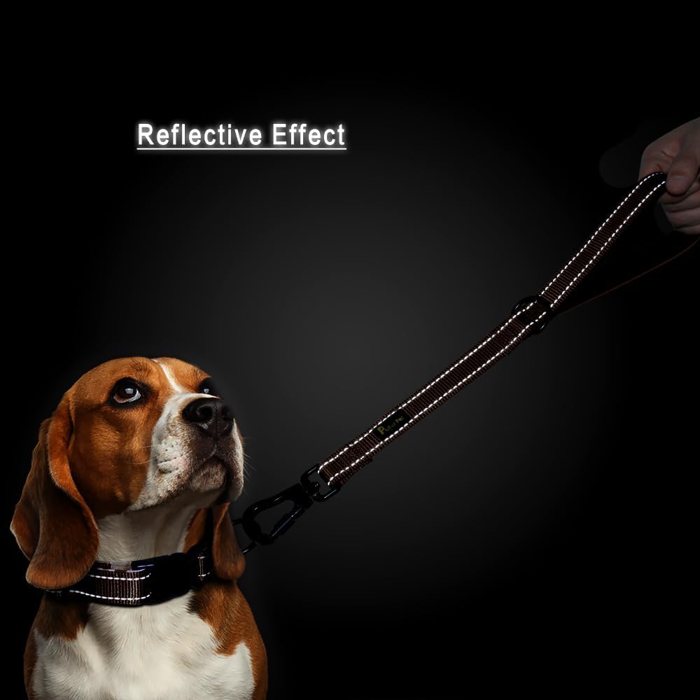PLUTUS PET Short Training Dog Leash with Padded Handle for Medium Large Dogs,18 Inch Heavy Duty Strong Traffic Leash with Carabiner Clip for Climbing Walking or Guiding Blind(18”,Chocolate)