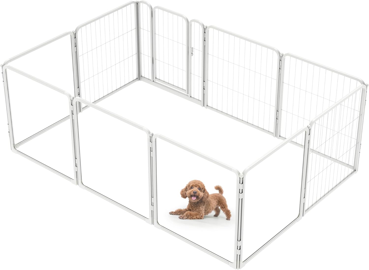 FXW Homeplus Unleashed Indoor Dog Playpen - Stress-Free and Safe Play, Heavy Duty 24 Inch 5 Acrylic Panels + 5 Wire Panels Dog Pen for Puppy and Small Dogs, White│Patented