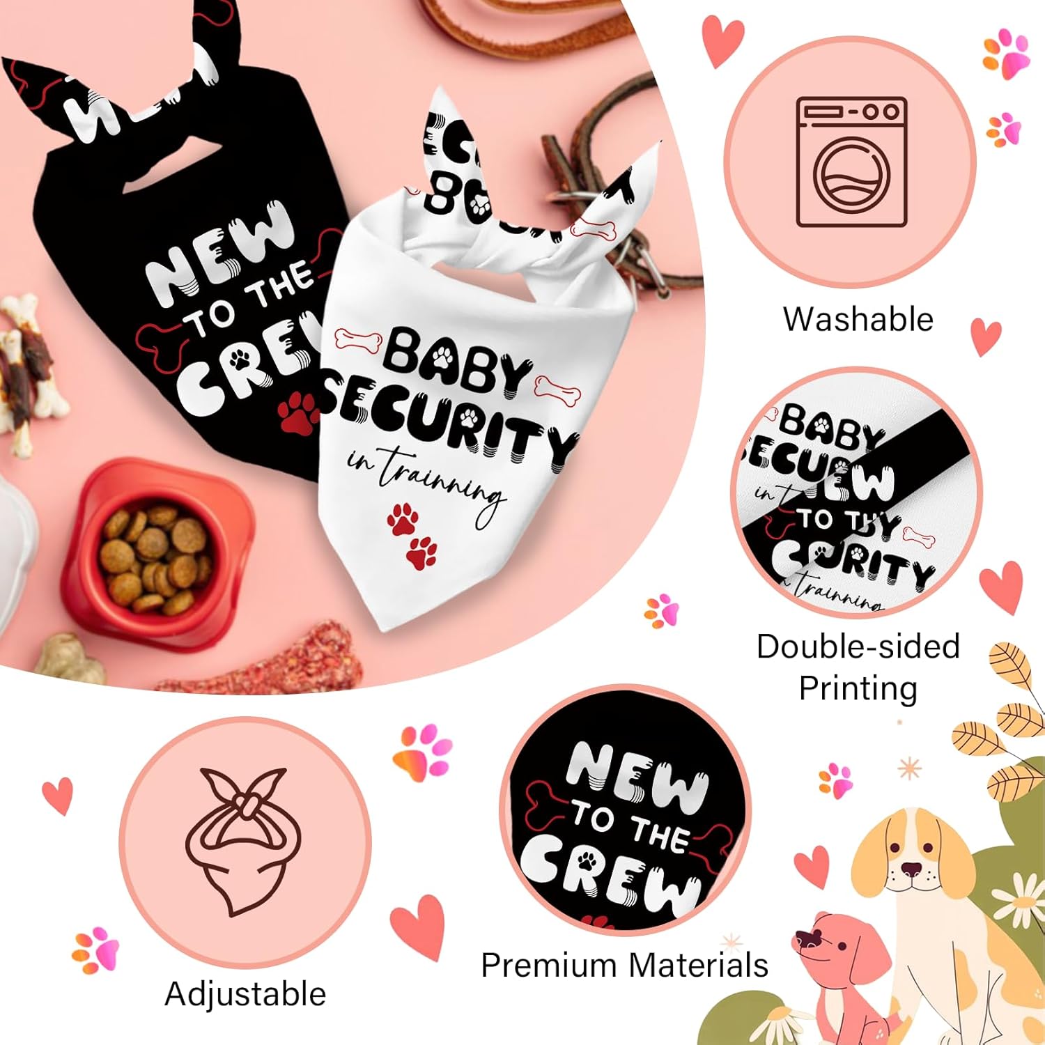 - Quality Polyester: These baby security dog bandanas are ultra-soft against your pup's fur while being tough enough for daily adventures. The lightweight, breathable material ensures your sassy princess stays cozy without overheating, whether she's lounging indoors or exploring outdoors