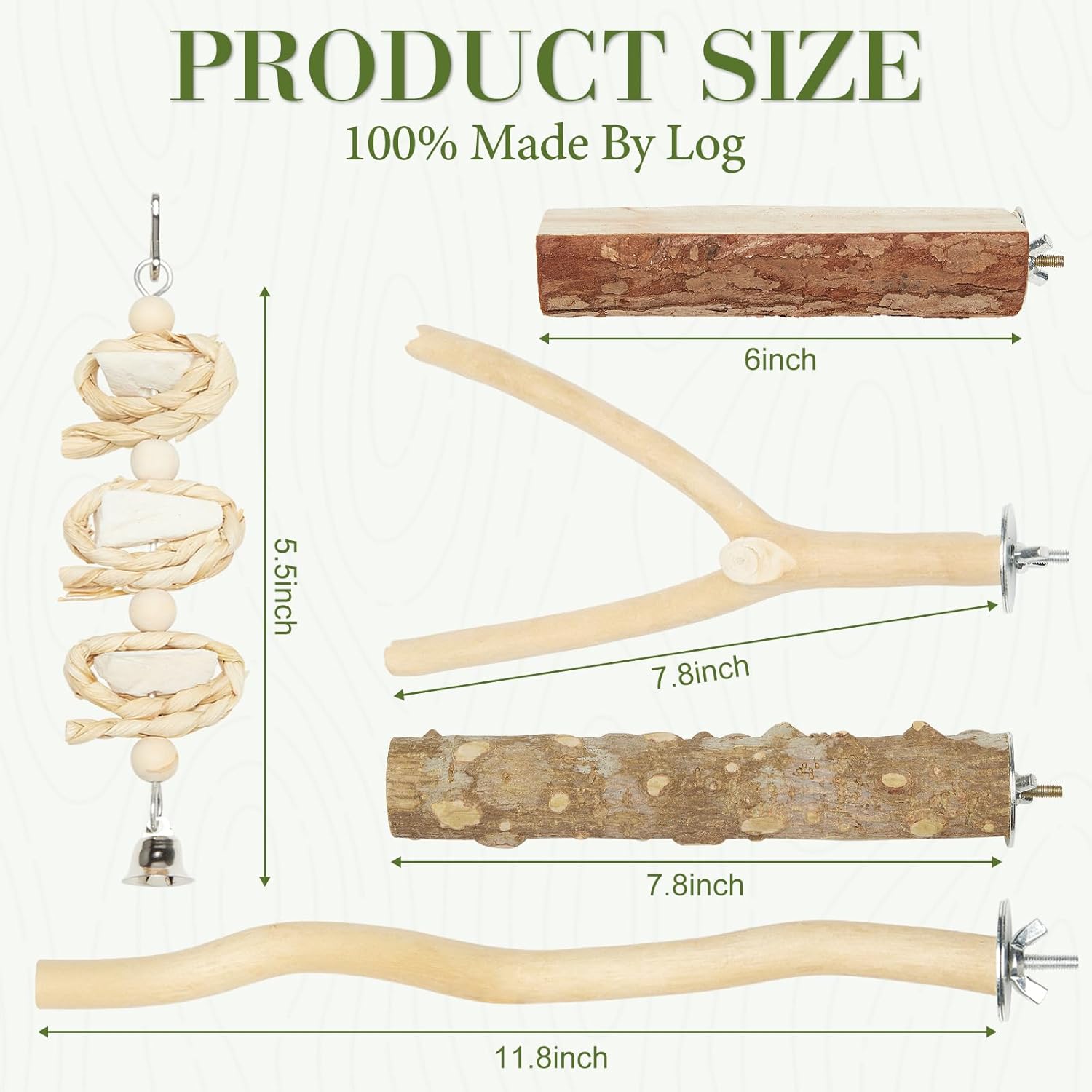 Bird Perches for Cage 6pcs Natural Bird Stand Branch for Cage with Hanging Bridge, Parrot Swing Toys Chewing Climbing Standing Branches Wood Pole Paw Grinding Fork Parakeet Platform