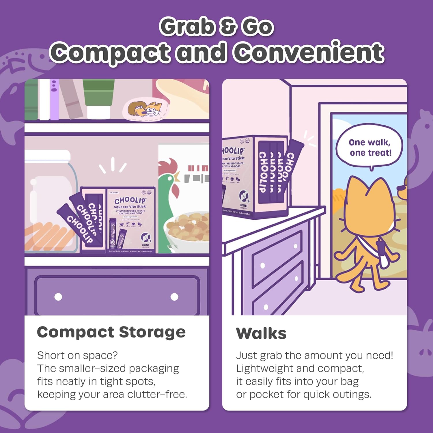 Grab & Go Squeeze Vita Stick Lickable Treats for Dogs & Cats. 49 Joint Support Sticks with Essential multivitamins. Soft and Tasty Paste for All Life Stages, Supporting Joints Health