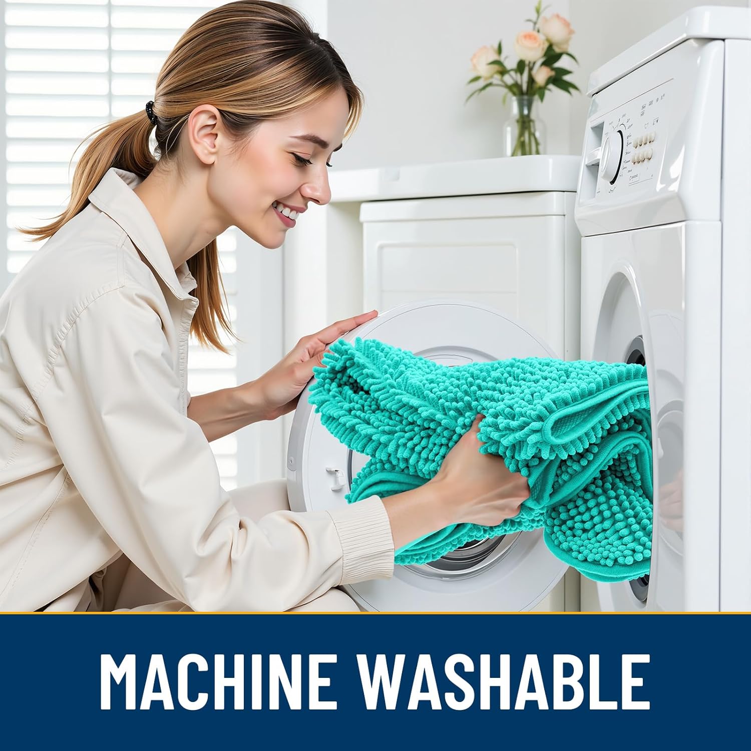 Smiry Dog Door Mat for Muddy Paws 24x16, Absorbs Moisture and Dirt Doormat, Non-Slip Washable Quick Dry Chenille Front Door Mat Indoor Entrance, Entryway Carpet for Inside Floor, Teal