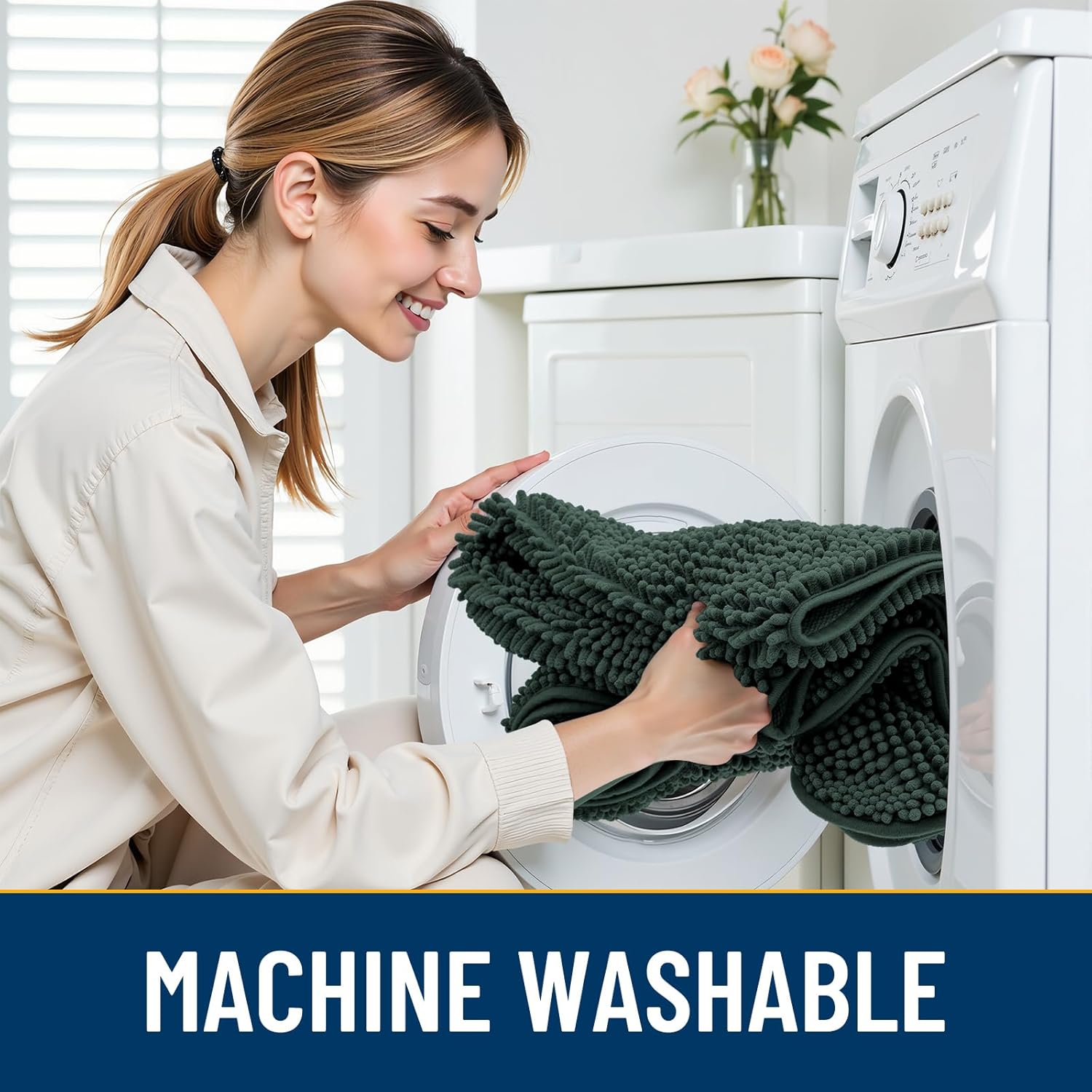 Smiry Dog Door Mat for Muddy Paws 47x32, Absorbs Moisture and Dirt Doormat, Non-Slip Washable Quick Dry Chenille Front Door Mat Indoor Entrance, Entryway Carpet for Inside Floor, Green