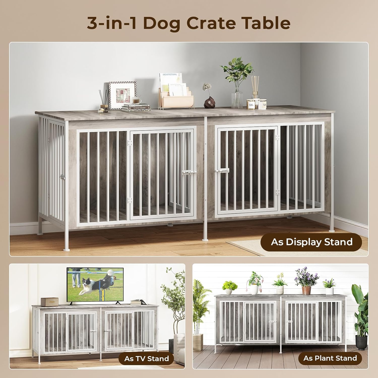 - Spacious Room for Two Dogs: With overall dimensions of 62.99" W x 23.62" D x 27.36" H, this extra large dog crate provides a roomy and comfortable resting space for two medium or large-sized dogs. The removable middle divider allows flexible useâeither keep dogs separately or give them one big shared space