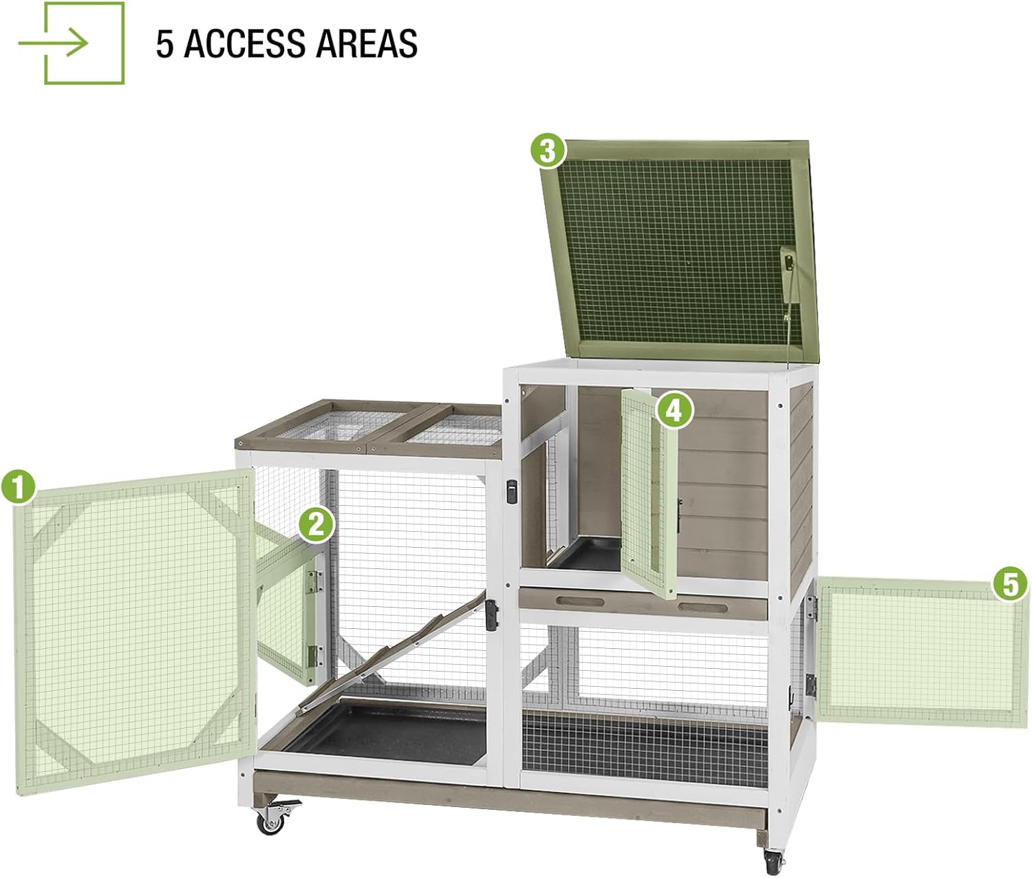 - 【Easy To Clean & Catch】The rabbit hutch has 3 access areas and two sturdy pull-out tray for easy cleaning and easy catching of rabbits.