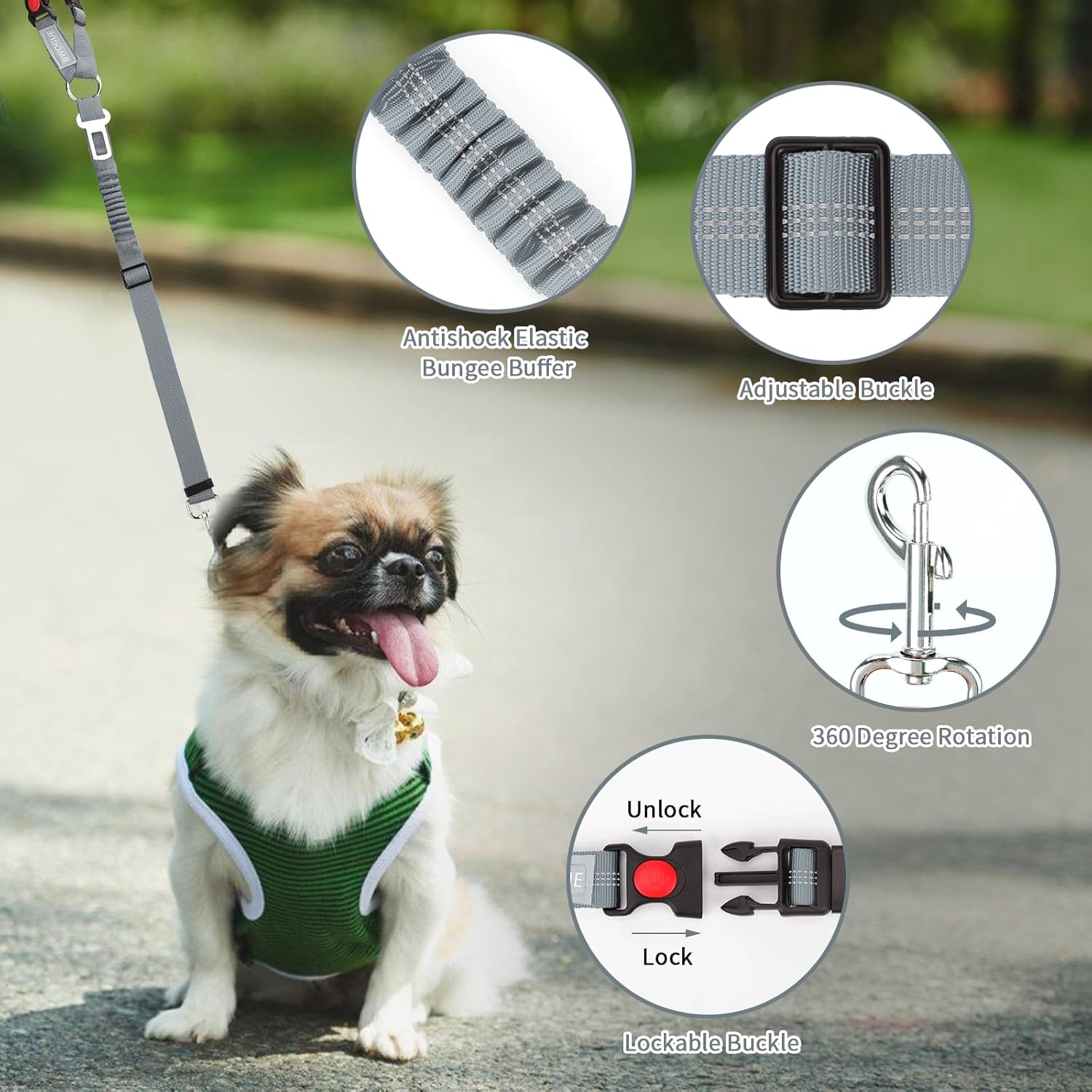 - Well Made & Durability: Extra durable rip-stop nylon, a powerful elastic bungee cord and high quality metal hardware, strong and durable. The buckle design of dog car leash, can be quickly locked and released, making pet safety belt more practical. The elastic bungee helps dog prevent jerking with sudden movement