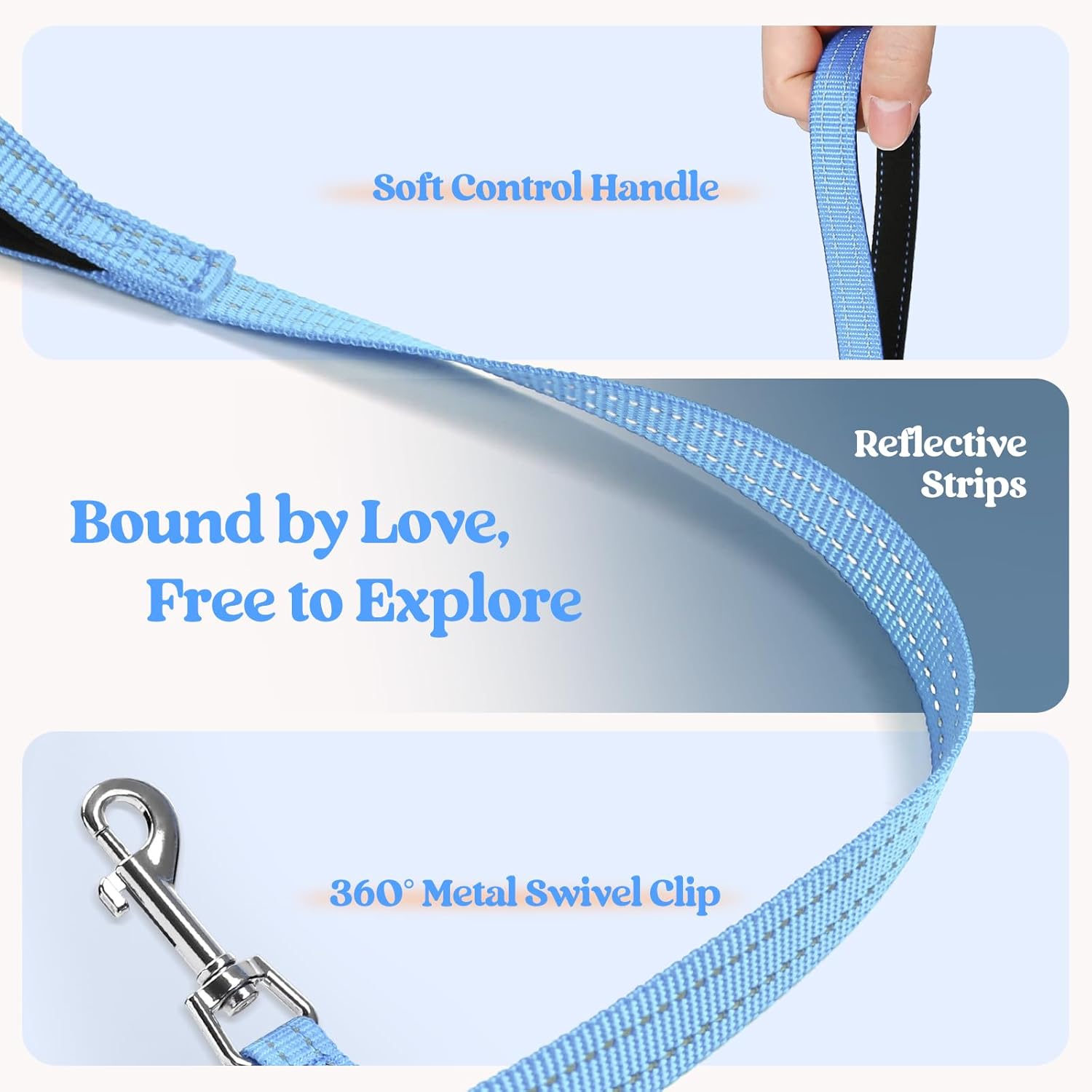 - Dog Harness with Leash SetďźThe color-matching harness and leash with reflective bands make it fashion and visible for pet outing. The leash is 5.15ft in length, with an anti-tangling clip and a palm-friendly handle