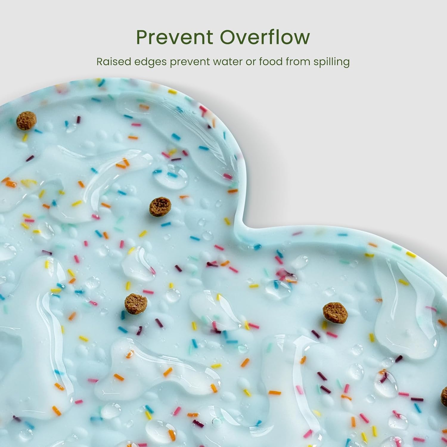 - Health Silicone Material - This pet bowl mat is non-toxic, and non-allergenic, protecting the health and safety of your pet's feeding. 25.6" x 13" holds two regular big bowls, perfect for medium to large-sized dogs and cats to enjoy a delicious meal tray.