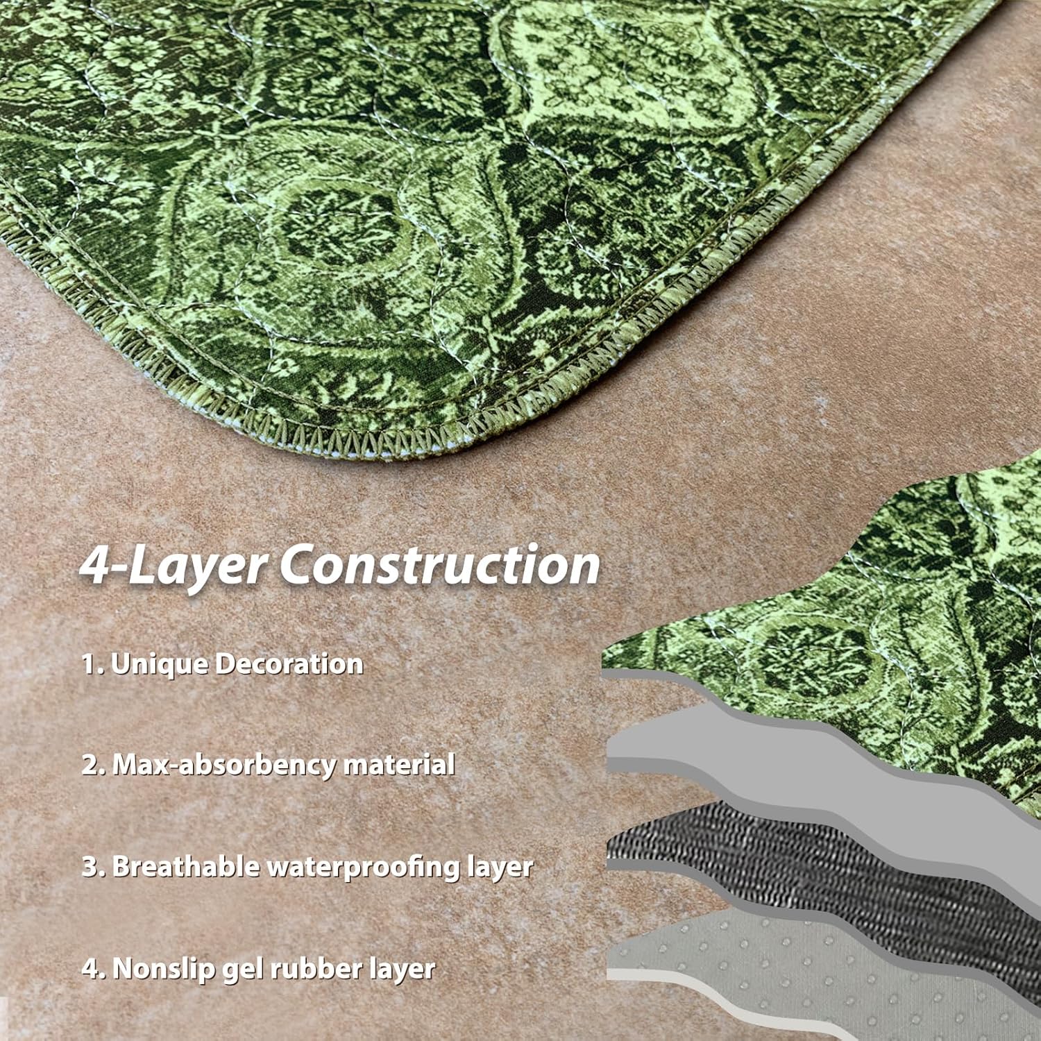 nunubaby Washable Pee Pads for Dogs, Stylish, Non-Slip and Leak-Proof Pee Pads. Reusable Potty Pads for Dogs for Crates and Floors.(Green/Multi, 18" x24")
