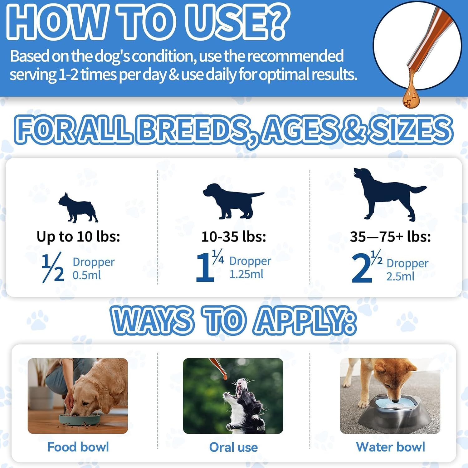 - Chicken Flavor - Suitable for All Ages, Breeds & Sizes: A popular choice among pet owners, our herbal wellness drops offer gentle support for small, medium, and large dogs. Our product features delicious chicken flavor dogs love! Simply mix into food, water, or administer directly. For ongoing support, use daily based on weight: Under 10 lbs: ½ dropper (0.5 ml), 10-35 lbs: 1¼ droppers (1.25 ml), Over 35 lbs: 2½ droppers (2.5 ml).