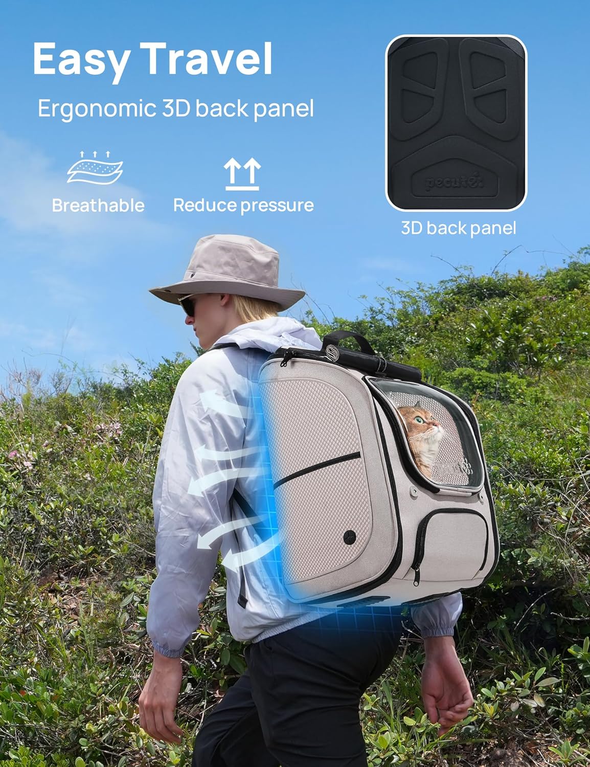 - Comfortable Carrying Experience: There is no pulling feeling when carrying the cat, and you donât need to bend down when carrying it. The one-piece 3D printed back panel fits the back and improves the breathability of the back. A good cat backpack not only serves pets, but also serves pet owners.
