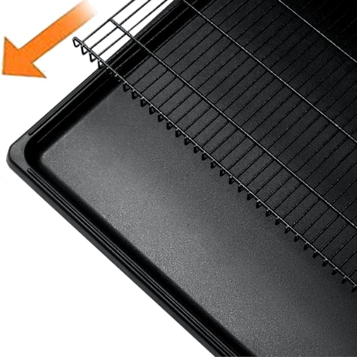 - ăEasy to CleanăThe floor grate has a slide-out tray underneath, which allows for easy clean up. And the grate size is perfect,which can not only let the dog food and excrement fall,but also let your dog stand firm. Both of them are Removable.