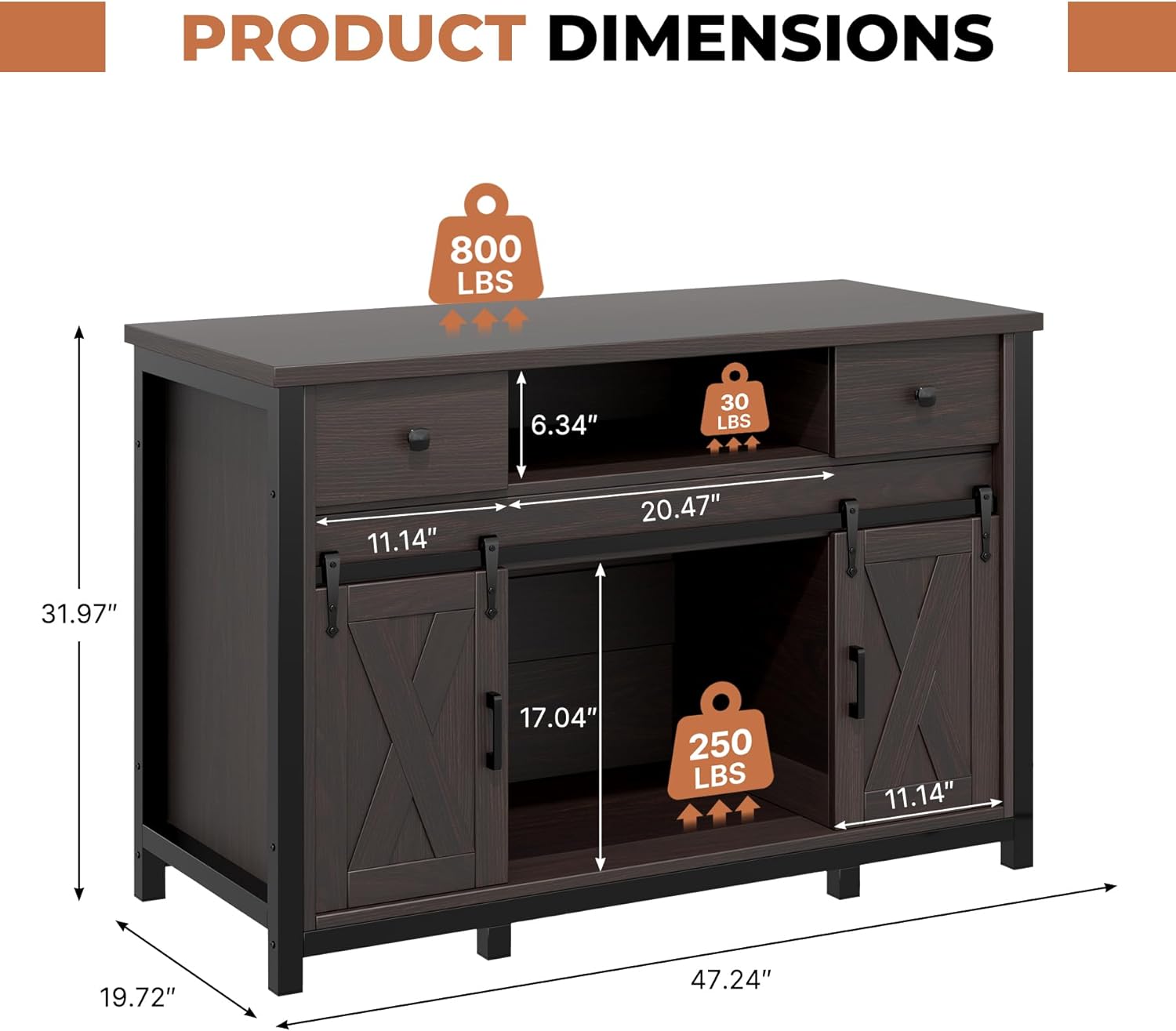 - [Spacious Dual Cabinets]: Ample storage with Adjustable shelves & partitions,smooth-sliding barn doors for easy access to fish food, tools, and supplies.