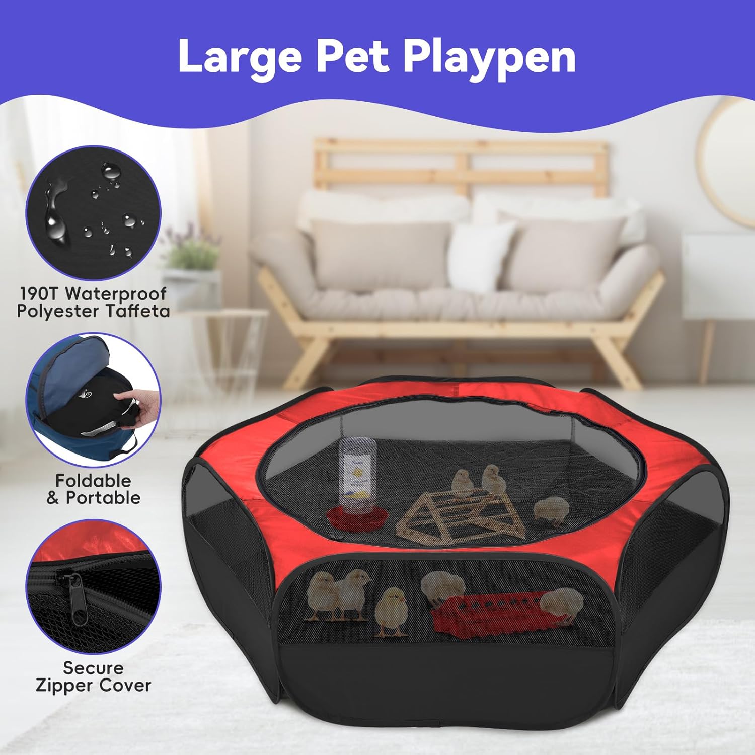 - 【Quality Chick Habitat】 Small pet enclosure features waterproof polyester taffeta and high-density mesh, preventing dirty liquids penetration into the floor, breathable and prevent chicks from escaping. Chick perch fits multiple chicks to stand, play and rest at the same time. (Tips: Manual installation required, comes with 1*Phillips screwdriver, 16*screws.)