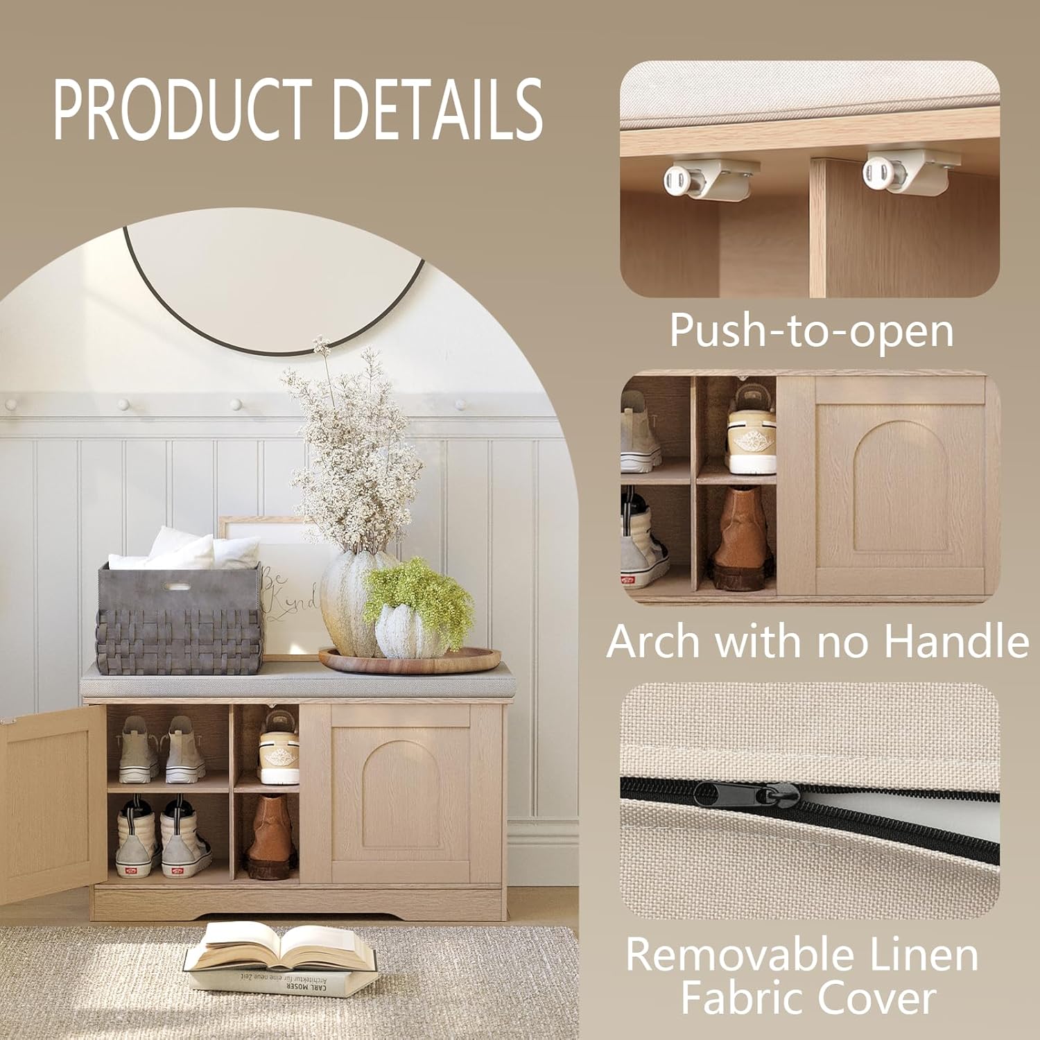 - 【Effortless Push-to-open Door 】Feature a fully enclosed design with a push-to-open mechanism, keeping shoes clean and tidy while avoiding accidental bumps against door handles during use. Reasonable height and soft cushion let you change shoes by sitting on the bench more comfortable without bending down or squatting