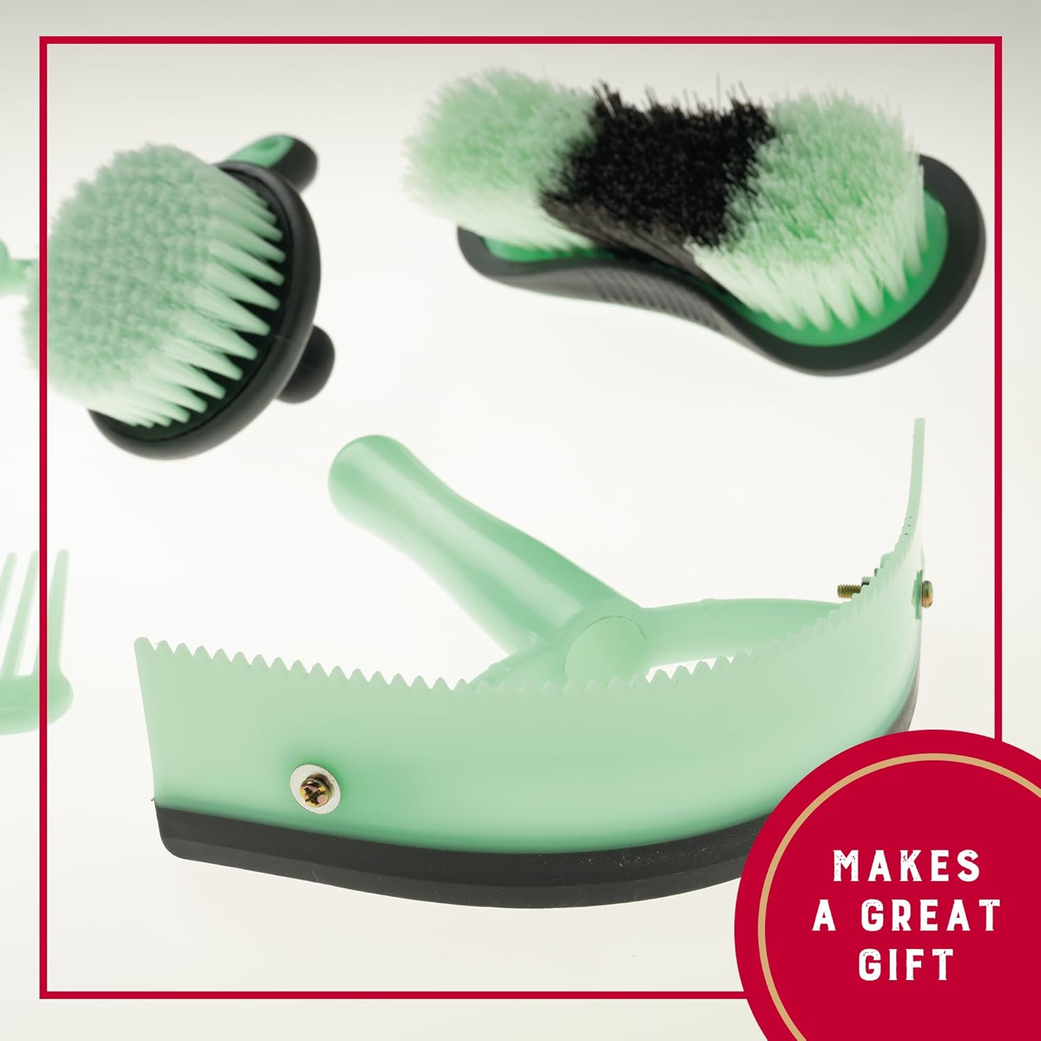 Weaver Equine 6-Piece Horse Grooming Kit, Ergonomic Gentle Horse Care Kit, Equestrian Supplies for Bathing Support, Detangling, and More, Mint/Gray