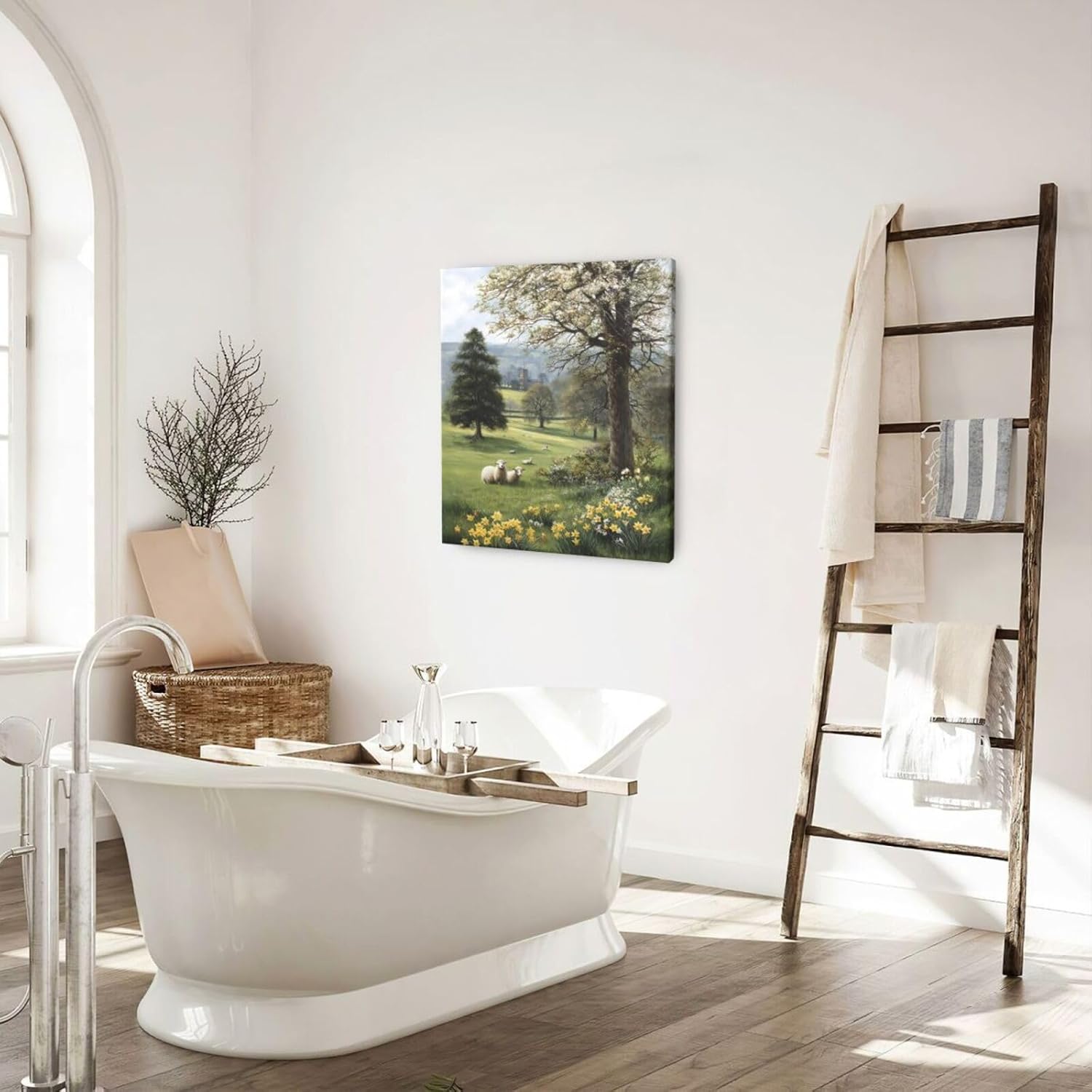 Country Sheep Canvas Wall Decor Farmhouse Rustic Lamb Wildflower Wall Art Nature Countryside Landscape Pictures Painting Print Framed Artwork Decorations for Bathroom Living Room Bedroom 24"x20"