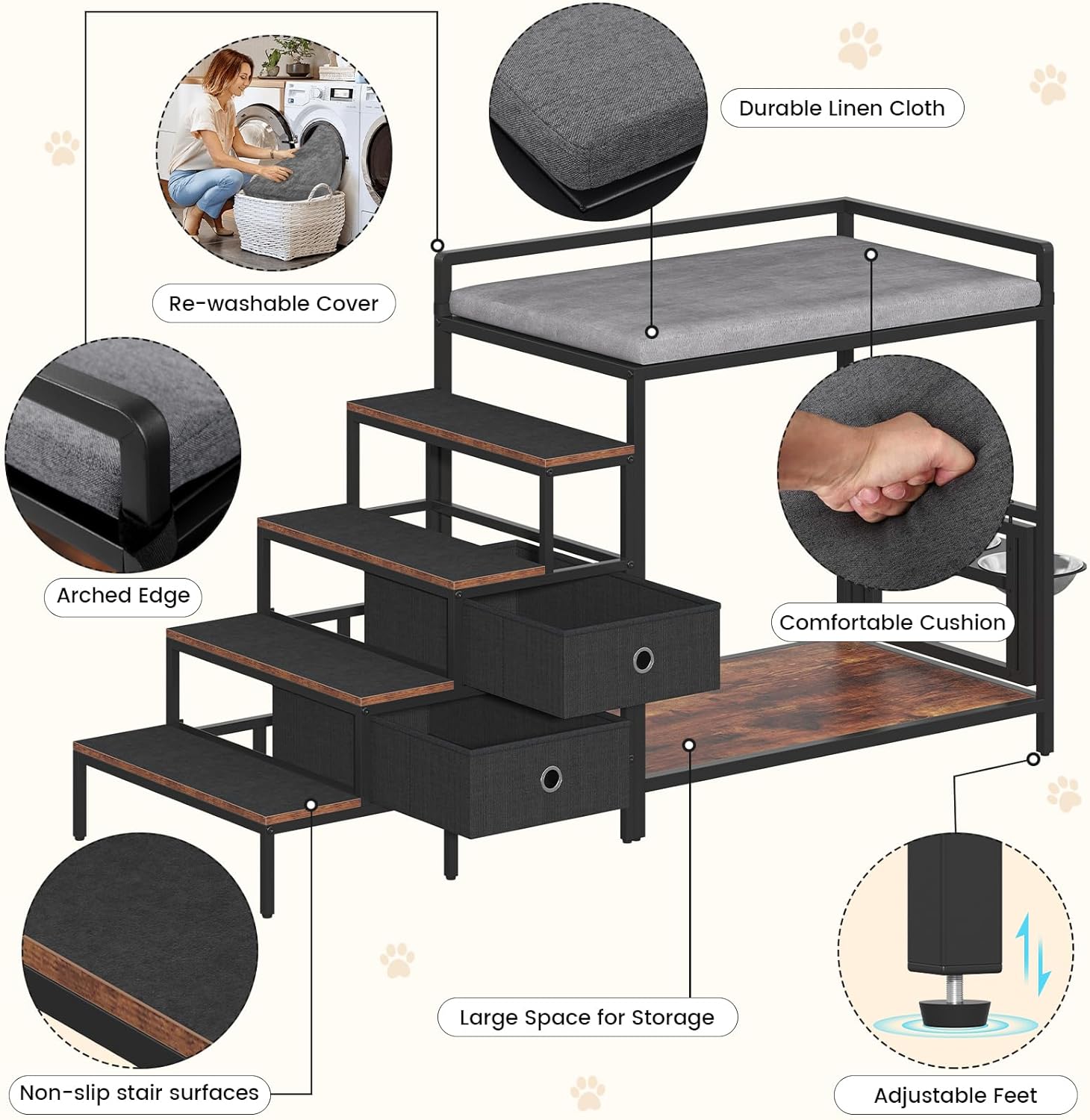 - SMART MULTI-FUNCTIONAL DESIGN: The dog window perch with stairs offers a cozy top sleeping space with a cushion and a versatile bottom area – perfect for creating a second pet sleeping nook or storing toys. Allows two pets to enjoy the space simultaneously. Plus, the stairs include two upgraded, spacious storage drawers.