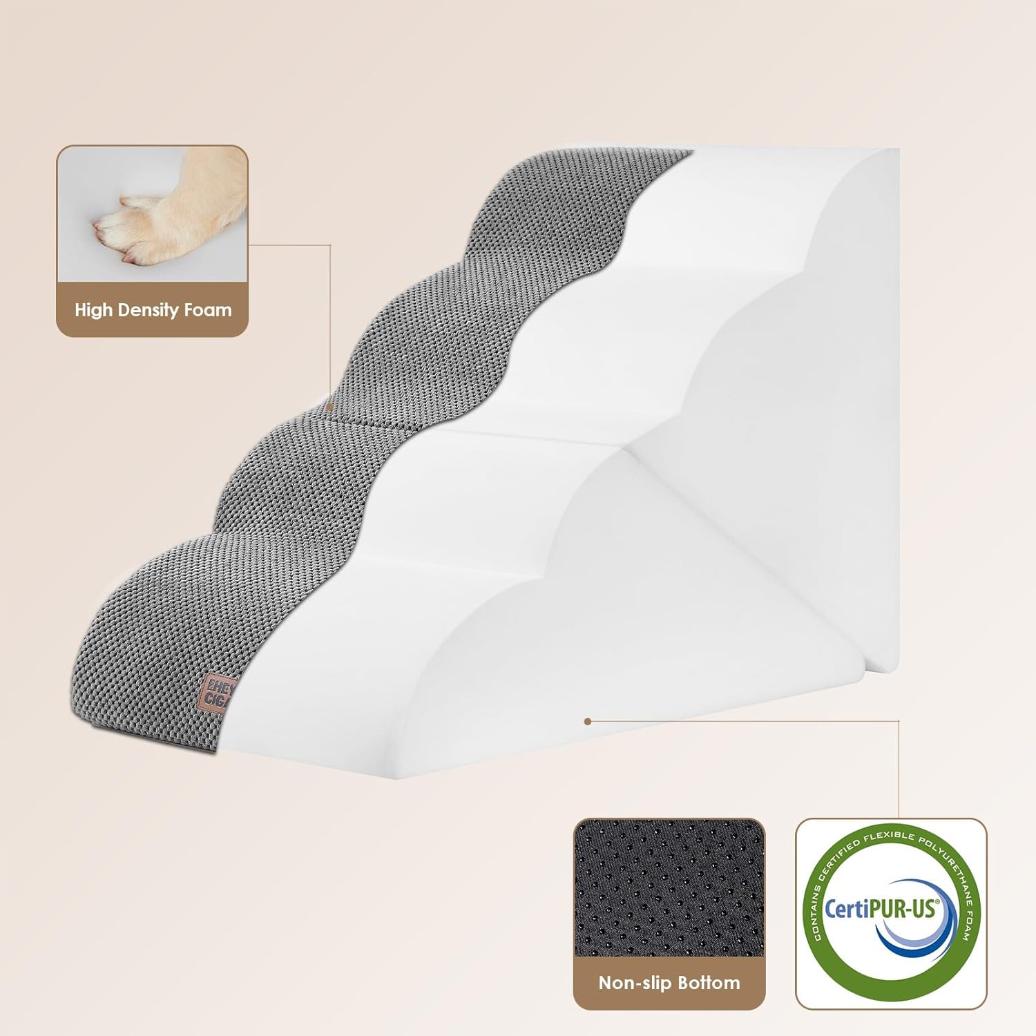 - COMFORTABLE PET STAIRS - This foam dog stair is designed directly against the edge of a bed, sofa or other furniture, so your pet can climb up and down comfortably.