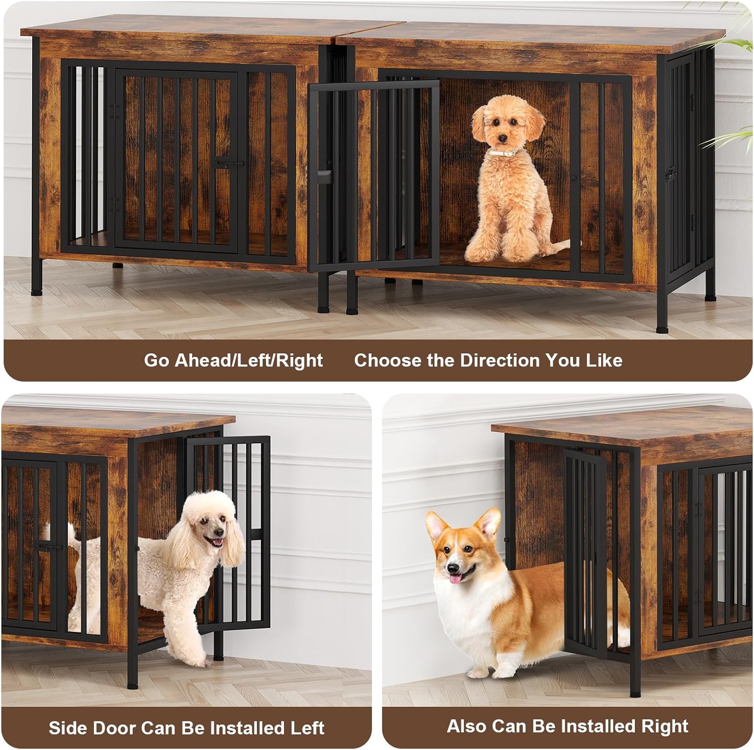 • 【Put It in Your Home Freely】: Dog can pass through side door slowly to avoid hyper activity, and the spacious front door will give them more freedom and convenience. You can install side door as you need, and flexibly place the newly arrived dog cage without moving existing large furniture. When you need to place it on the left side against the wall or large furniture, you can install the side door on the right side. Similarly, side door can also be installed on the left side as needed.