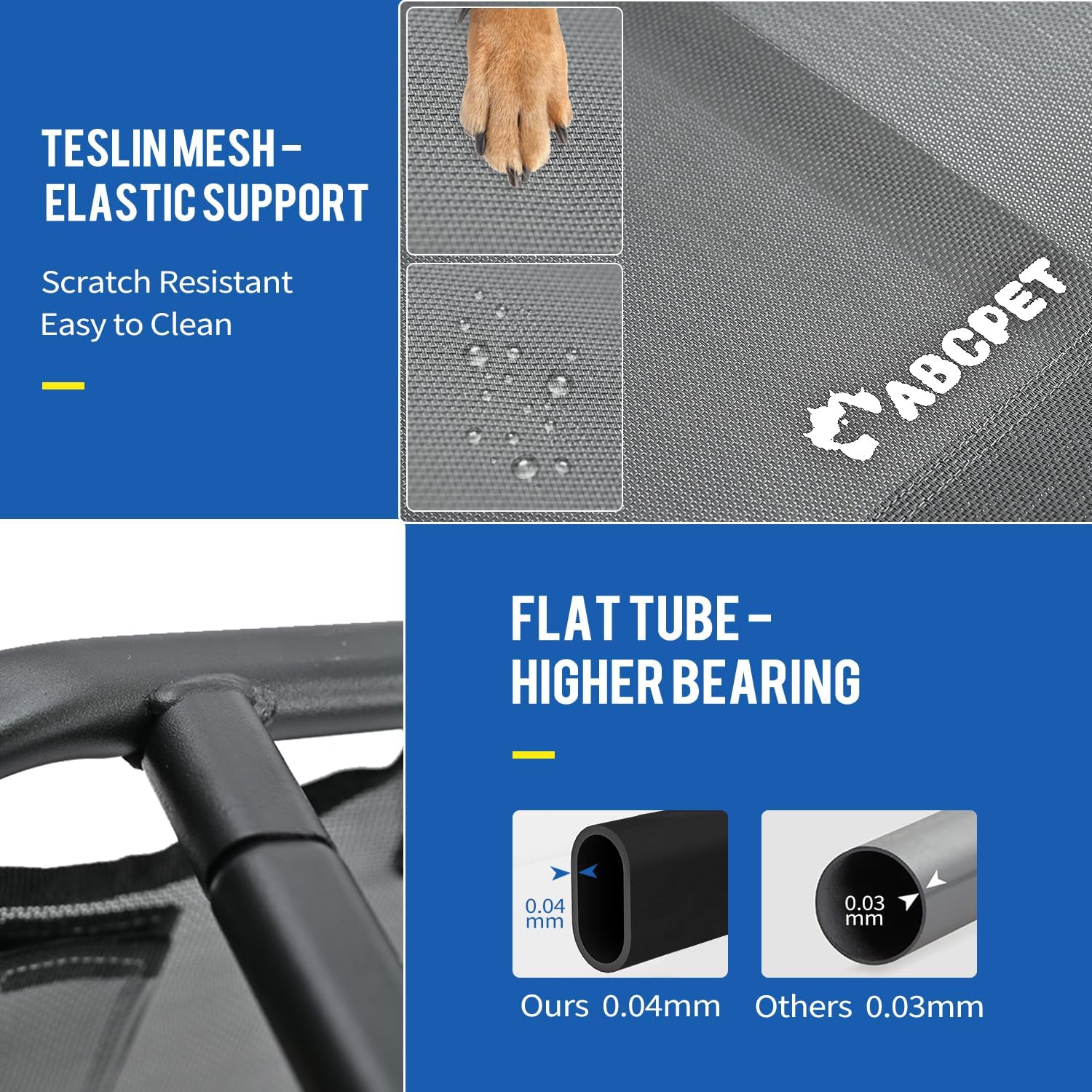 Elevated Dog Beds Extra Large Raised Dog Cots Outdoor Dog Bed Waterproof Pet Cots Stable and Easy Assembly, Teslin Fabric with 1.2mm Thick Iron Frame, Breathable, Ultra-Sturdy,Grey, 54*37*8.7
