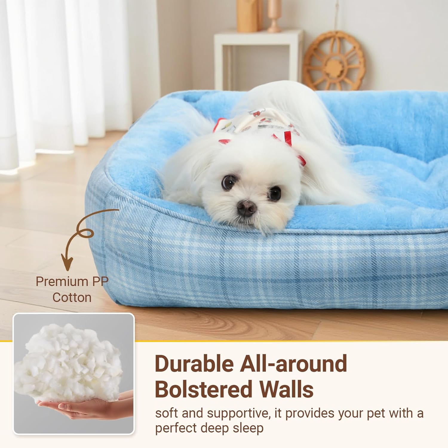 - 【Super Cozy Fabric】The dog bed for small dogs features luxurious soft fabric that provide a calming feel and suits for all seasons to use. It also adopts fashionable checkered design that matches various styles of furniture and decorate your home.