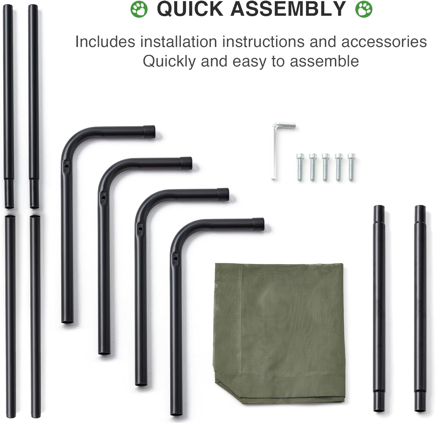 - EASY TO ASSEMBLE: Easy to assemble and disassemble for transport, including: 1 mesh, 4 legs, 2 leg extension rods, 4 cross support extension rods, 4 screws (WONâT rust) and 1 hex key. Off-the-ground design is perfect for both indoors and outdoors, you can place a dog pad on top of the mesh like a mattress to make it softer in your living room, also it is convenient for traveling, camping, hiking, fishing, BBQ, etc .