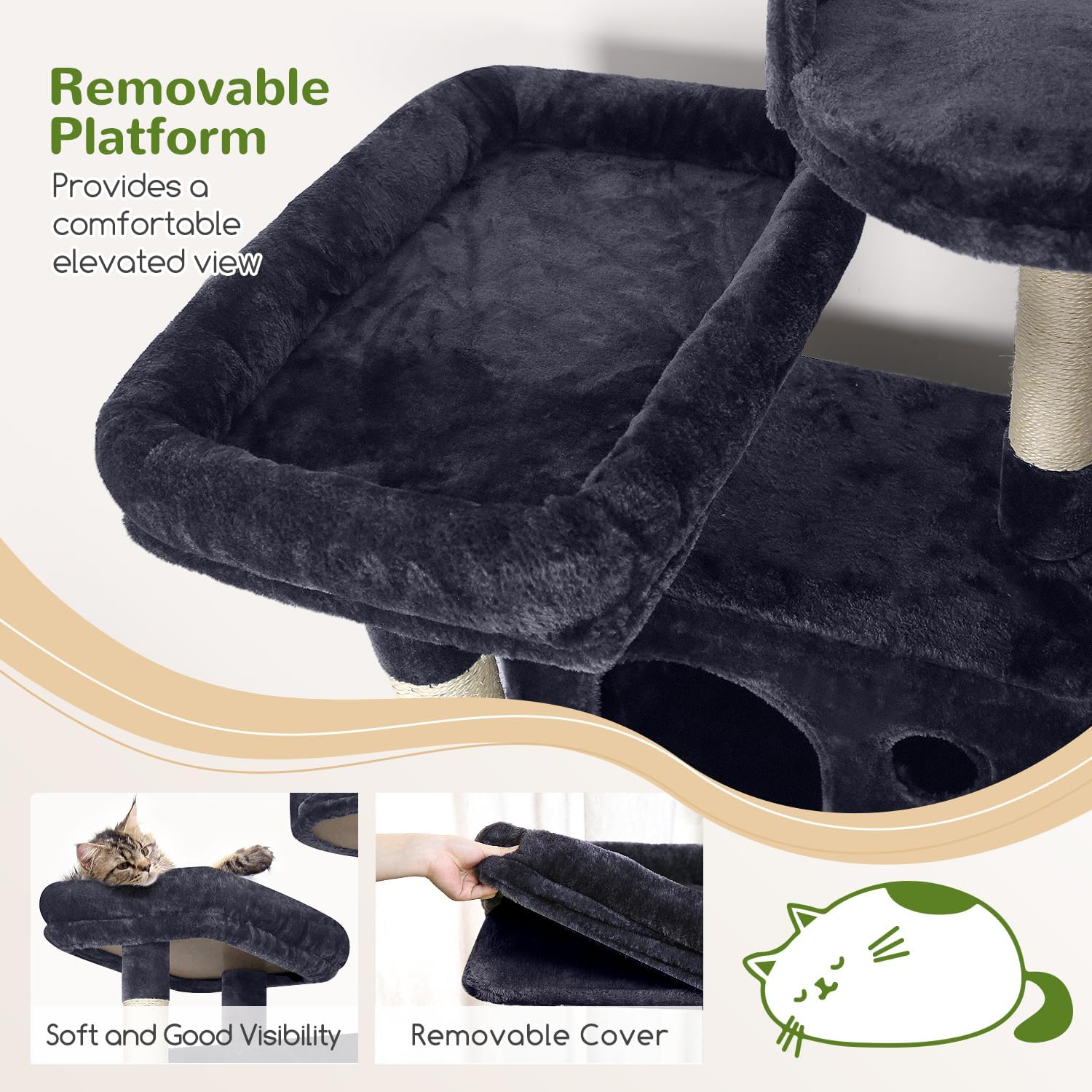 - MULTIPLE RESTING PLACES: Our tall cat tree features a enlarge platform (11.8â x 17.7â), a high point top perch and two spacious cozy cat caves, making it an excellent choice for multi-cat households. Provide ample space and multiple activity areas, allowing each cat to find its own cozy corner and enjoy the fun of playing together