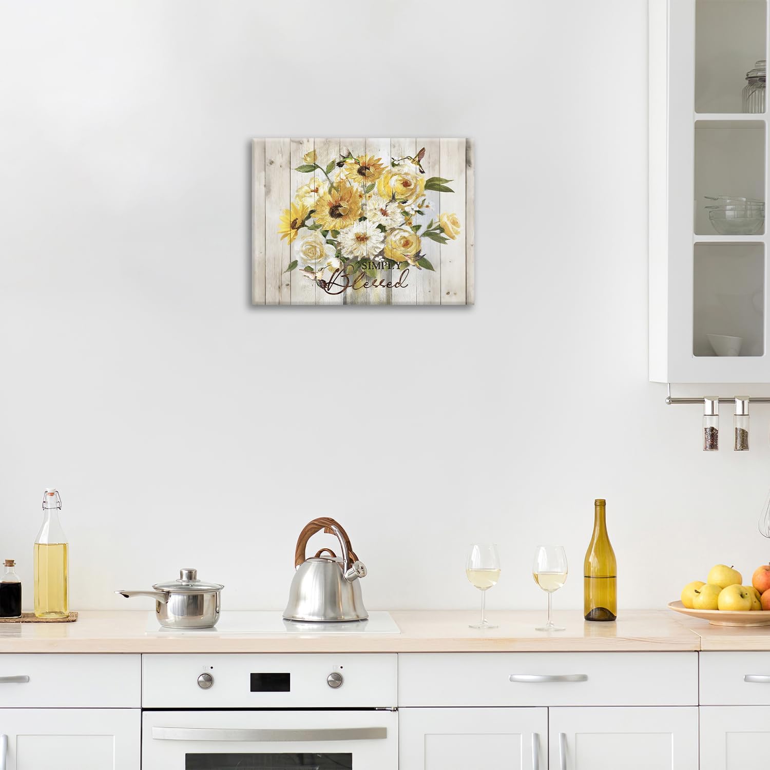 Sunflower Bathroom Pictures Wall Art, Simple Blessed Floral Bathroom Wall Decor, Flower Framed Painting Canvas Artwork for Bedroom Living Room Decorations 20"L x 16"W