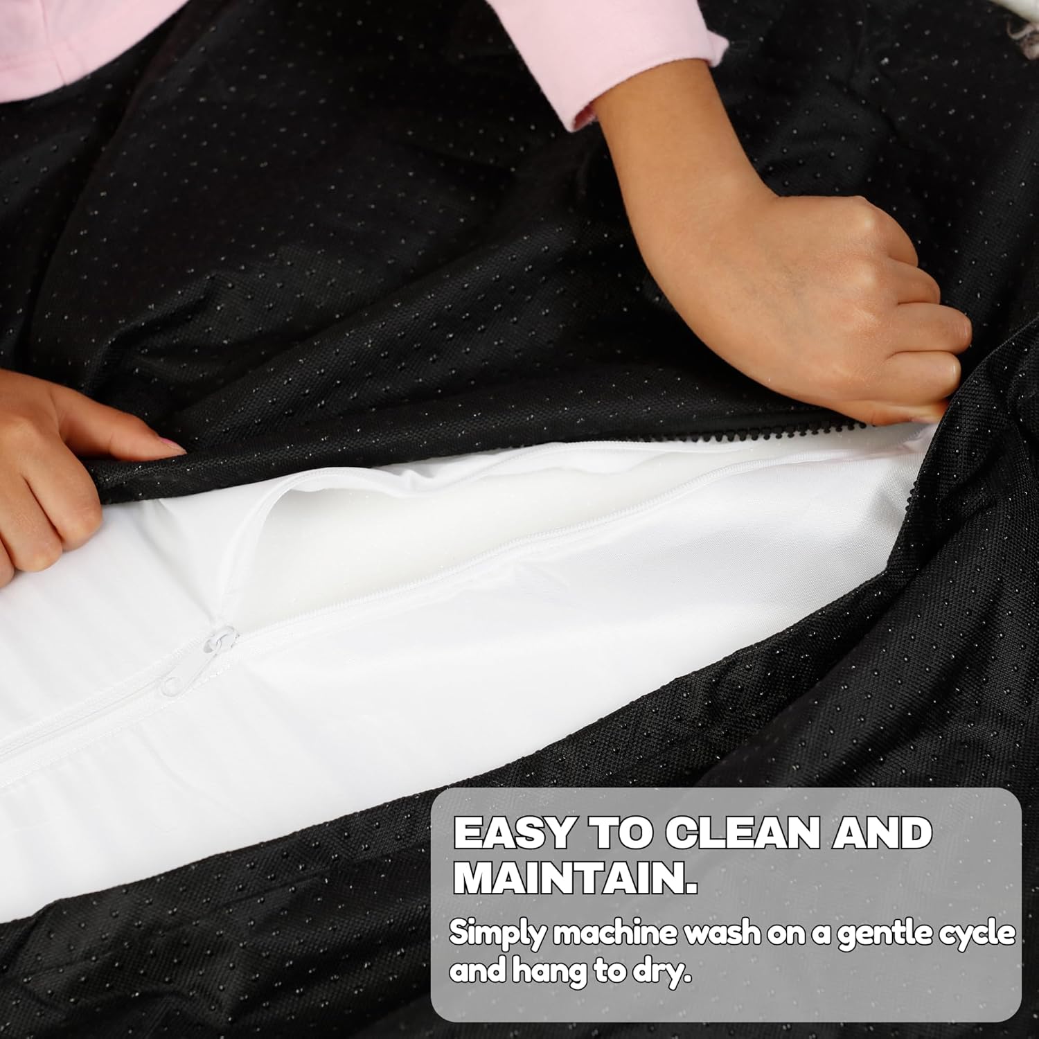 - EASY TO CLEAN & MAINTAIN: Includes a waterproof liner to protect the foam, plus a removable and machine-washable faux fur cover for quick, easy cleaning.