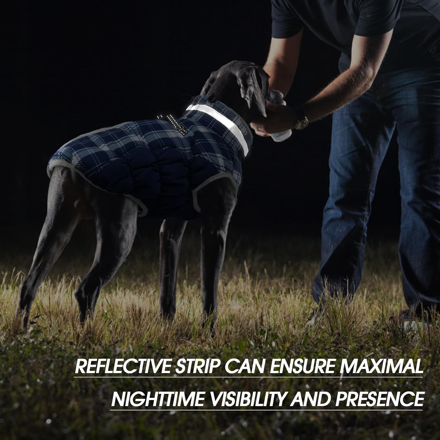 FUAMEY Dog Coat for Large Dogs,Waterproof Dog Winter Jacket with Harness Built in Puppy Cold Weather Coats Reflective Pet Vest with Zipper Warm Fleece Dogs Snowsuit Windproof Blue Plaid 2XL